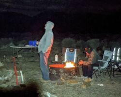 Postscript: While I still have not spoken to Billy beyond texting, what I know from brief reporting is that the other 3 camp sites in camp filled up with visitors Friday night. The sites were very far apart, so it certainly wasn’t like a typical campground, but it certainly wasn’t like having the place to yourself either. Then, the big news. On the way out Saturday morning, Billy lost his brakes. He did yeoman’s work maneuvering the rig the 50 miles back to pavement on road 34. Once there, they stopped for a break and to make a plan for getting back into Gerlach.