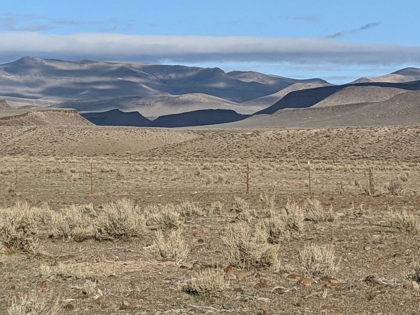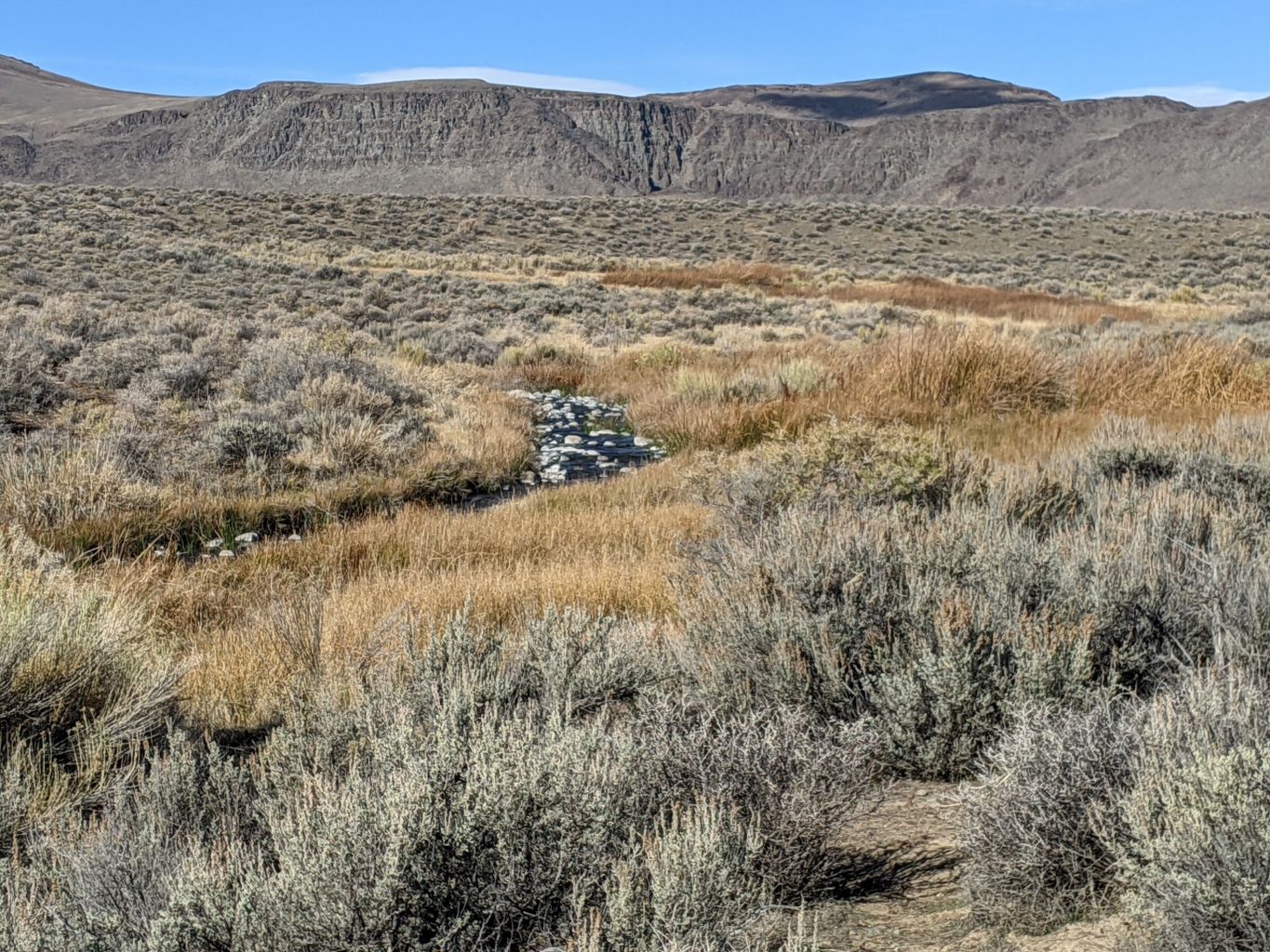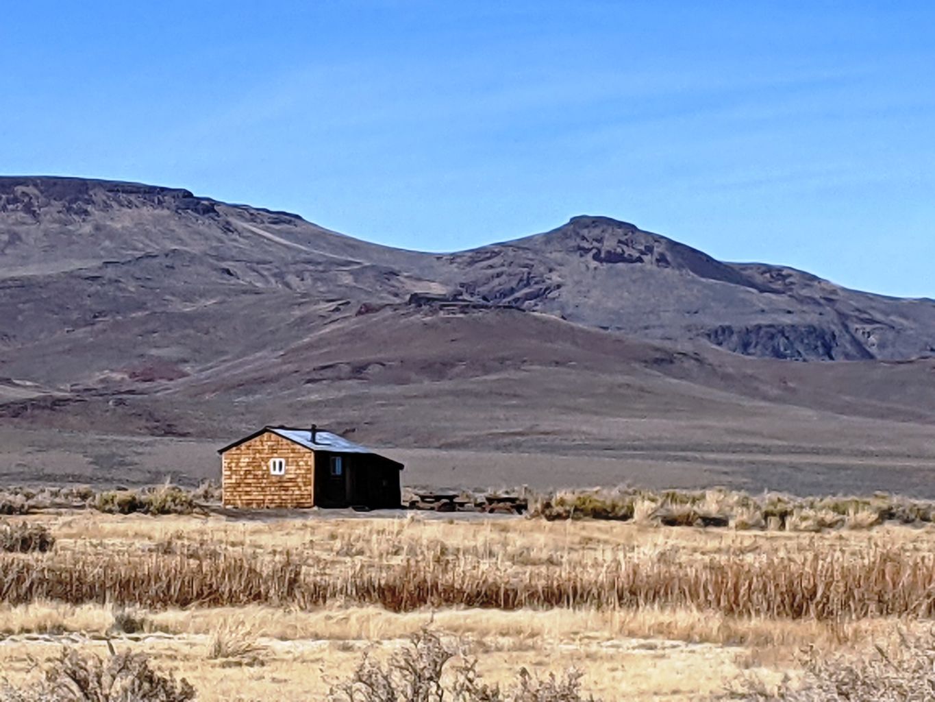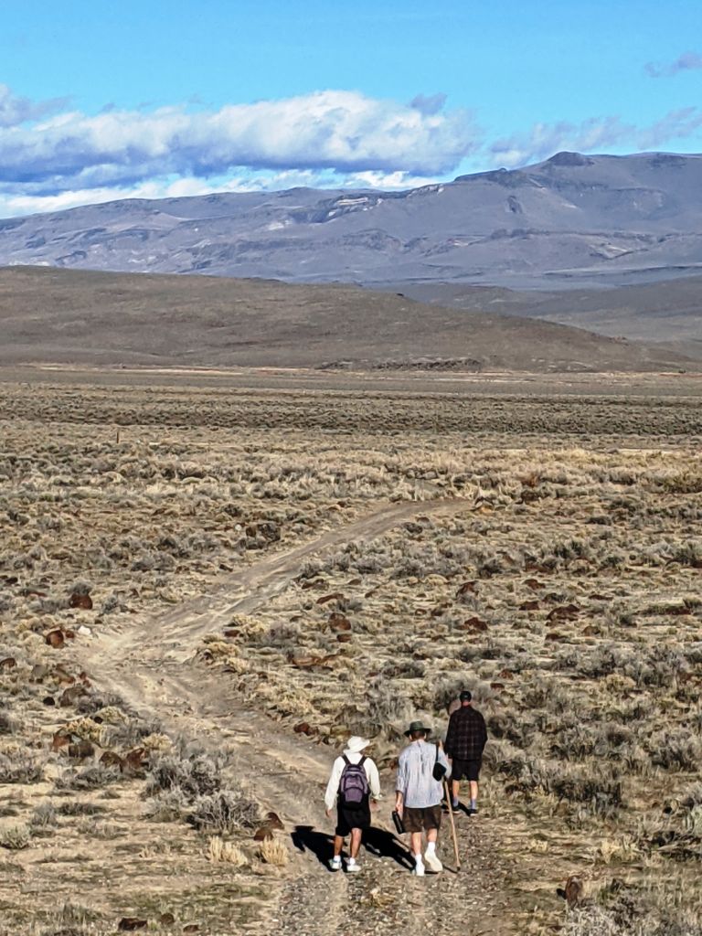 Completely out in the open, nary a shrub or sage bush higher than a knee cap, out on a massive broad slope, we had climbed again in elevation and almost got us tucked up against the low hills behind us. We had unbroken views all the way back to Mudd Meadows, Soldier Meadows, and the mountains bordering the playa. There was plenty of open space as the vegetation was pretty thin. BLM had done a great job of outlining roads, trails, and sites with small rocks, and while I was ready to jump into the first site, which turned out not even to be a site, just the info center, we jumped into the next one, not a sole in sight, no evidence of humans other than what could have been from years and years ago. We had found our place.