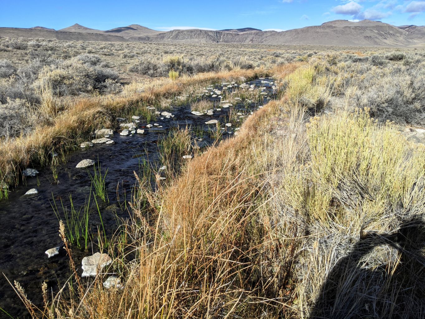 The sign indicated we were within a mile or so of 3 different camping areas. It also indicated that on top of the rather massive and irregularly shaped piece of private land belonging to Soldier Meadows, we also were now in a BLM designated Area of Critical Environmental Concern (ACEC) within which, BLM wants you only to have fires in the designated camp spots. On the one hand, we are out in the middle of nowhere, in the off season, so really? I have to assume enforcement is rare. On the other, I hate the feeling of being concerned that every vehicle we see or hear may be BLM and getting rousted, having to move, paying a fine, etc. We travel all this distance to get away from people and these sorts of issues, not to worry about breaking the law. The sign also indicated a significant number of springs.