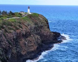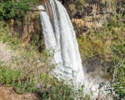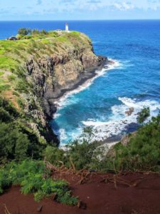 I wanted to see the Kilauea Light House, Princeville, Hanalei, and Wainiha, all on the far side of the island, and all recommended by Dennis to try to see.  K and I jumped in our rental car to make it happen, but we didn’t get too far before we took a detour to Wailua Falls.  It was unexpected, but worthwhile, even though it ate up more time to see the many places we also wanted to see.  We made it through tons of construction and past the destroyed Coco Palms where Elvis made some of his movies.  It was sad to see nothing but concrete ruins after all these years.  Kapa’a looked cool, but not enough time.