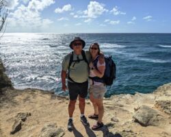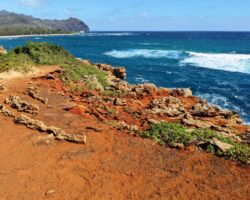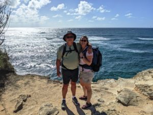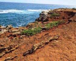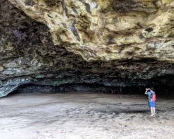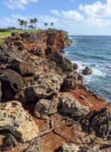 The next day, I had planned to take Kristen on a hike I had found doing my pre-trip research.  You could literally walk from our place, mostly along the beach, to the Makauwahi Cave Reserve.  After much discussion and gnashing of teeth, the whole crew cam with us.  We decided to drive some of the way to a trail access and hike from there.  It was awesome.  The scenery was spectacular, and we got the added bonus of walking on the Maha’ulepu Heritage Trail, along a few holes of the Poipu Bay Golf Course, past the Waiopili Heiau, and eventually made the caves.  They were a big hit and much more than I had expected.