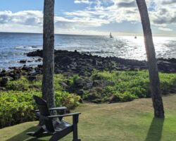 The next morning I took a huge walk down the beach again, past Marriott’s and a few other ocean-front resorts, weaving in and out of the beach accesses and the paths through the resorts.  I passed RumFire waterfront restaurant that I passed along to Rick and he ended up taking Jo there for a dinner.  I got back out to the street and followed a great walking path making time down Hoonani Road to Koloa Landing.   The rest of the day was spent watching the kids take surfing lessons and scuba diving.