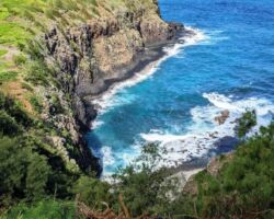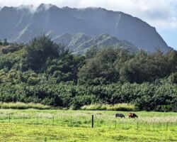 The overlook of Hanalei valley and river is a must and the little town is even better.  The narrow streets and small shops and mellow vibe is exactly what I was looking for.  I wanted to get all the way to the end of the road where the Na Pali Coast Wilderness begins, so we breezed on through to Ha’ena Beach and the Maniniholo Cave across the road.  A few more miles and we were at Haena State Park and the official end of the road.  It would have been great to be able to walk into the park a few miles, but not today.  We headed back into town famished and hunting for food.