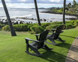 The next day, K wanted to take Jo into town for a girl’s day and massage.  They were able to make a reservation at a place in Lihue at one of the resorts.  I had been craving for some old world Hawaii, but since nobody else was into that sort of thing, I was left to my own devises.  Perfect!  I wanted to bring Kristen on a morning walk where I had explored before and Rick was up for it too, so the 3 of us headed out past Poipu Beach, and hit the Honu Bar outdoor restaurant of the Marriott Waiohai Beach Club.  It was super early and our waiter was cool.