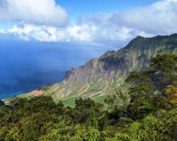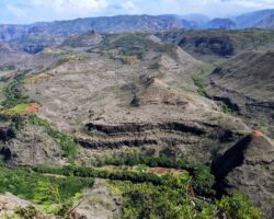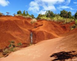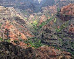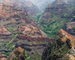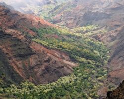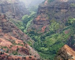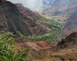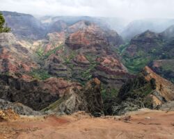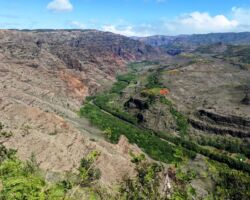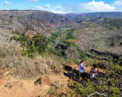 The next day we split up and drove our crew up into Waimea Canyon with Sharidi, Molina, K, and Jade.  On the way up, we took a random side road that brought us to a super cute little old town of Hanapepe.  It is a place I would love to go back to.  In recounting our trip to Dennis, he was fairly certain that was the town he and Lissa had bought some paintings that they love and adorn their home.  Up Waimea Canyon on Steve’s advice, we stopped at a couple of the Lookouts and at the Red Dirt Waterfall.  We eventually got to the end of the road at Pu’u O Kila Lookout and had a spectacular view of the Na Pali Coast.  It was a great day of short little hikes and spectacular vistas.