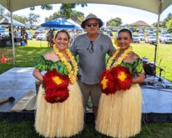 When they finished up, I took a picture with them and gave them a donation to help with travel costs for an upcoming hula competition they were attending.  Once they finished up, a large old lady came up on stage with her ukulele and a young dude with a guitar and they proceeded to play the loveliest old Hawaiian music.  I listened to them for an hour or so and when they finished another guy came up and played more music.  It was fantastic.  I decided to wander around and look at the vendors.