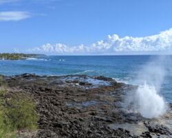 Eventually K and Jo headed to the massage and I headed the opposite direction.  I drove out Lawai Road, past the Beach House to the Kukui’ula Park and harbor.  I watched a few boats launch and some of the comings and goings, then headed up the road a piece to the Spouting Horn Park and blow hole.  There were a few people there, but everybody was polite and considerate of each other wanting to take pictures in the best spot and at the best moment.  I got my fill and then traipsed across the street to McBryde and Allerton Gardens.