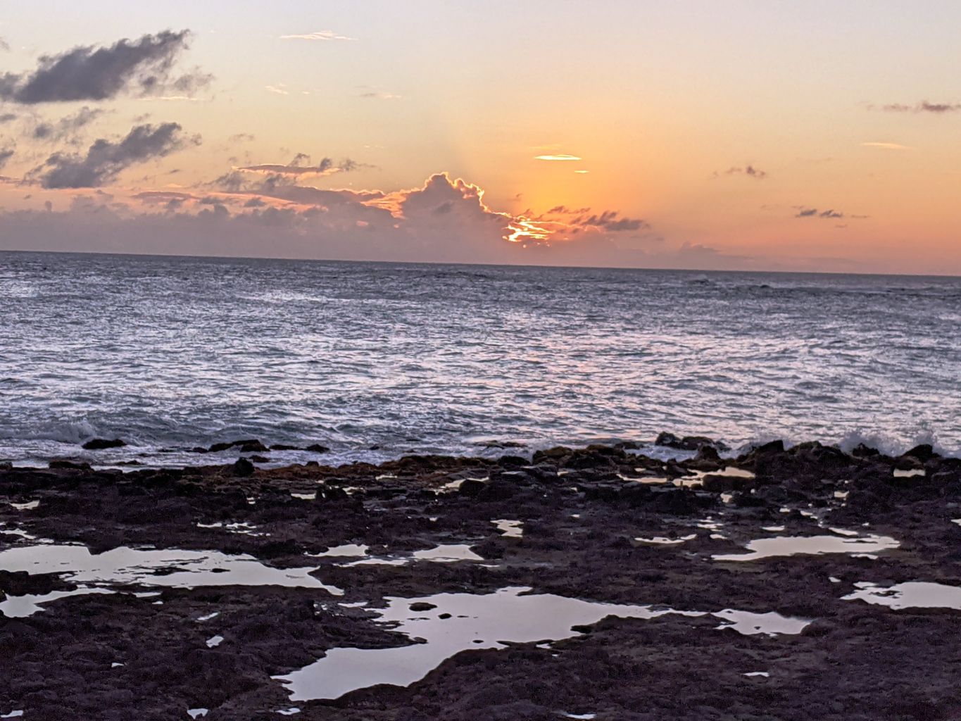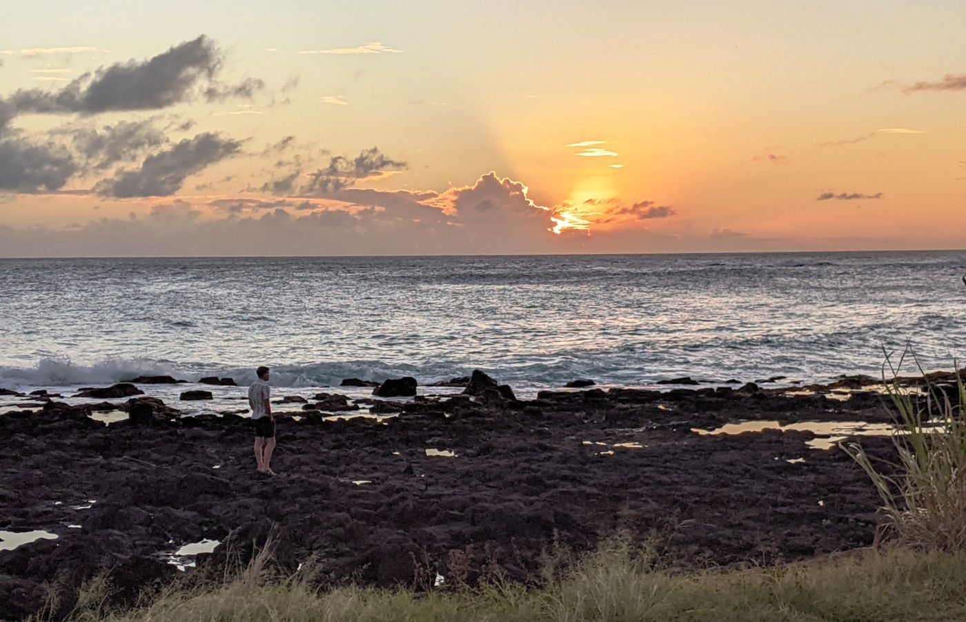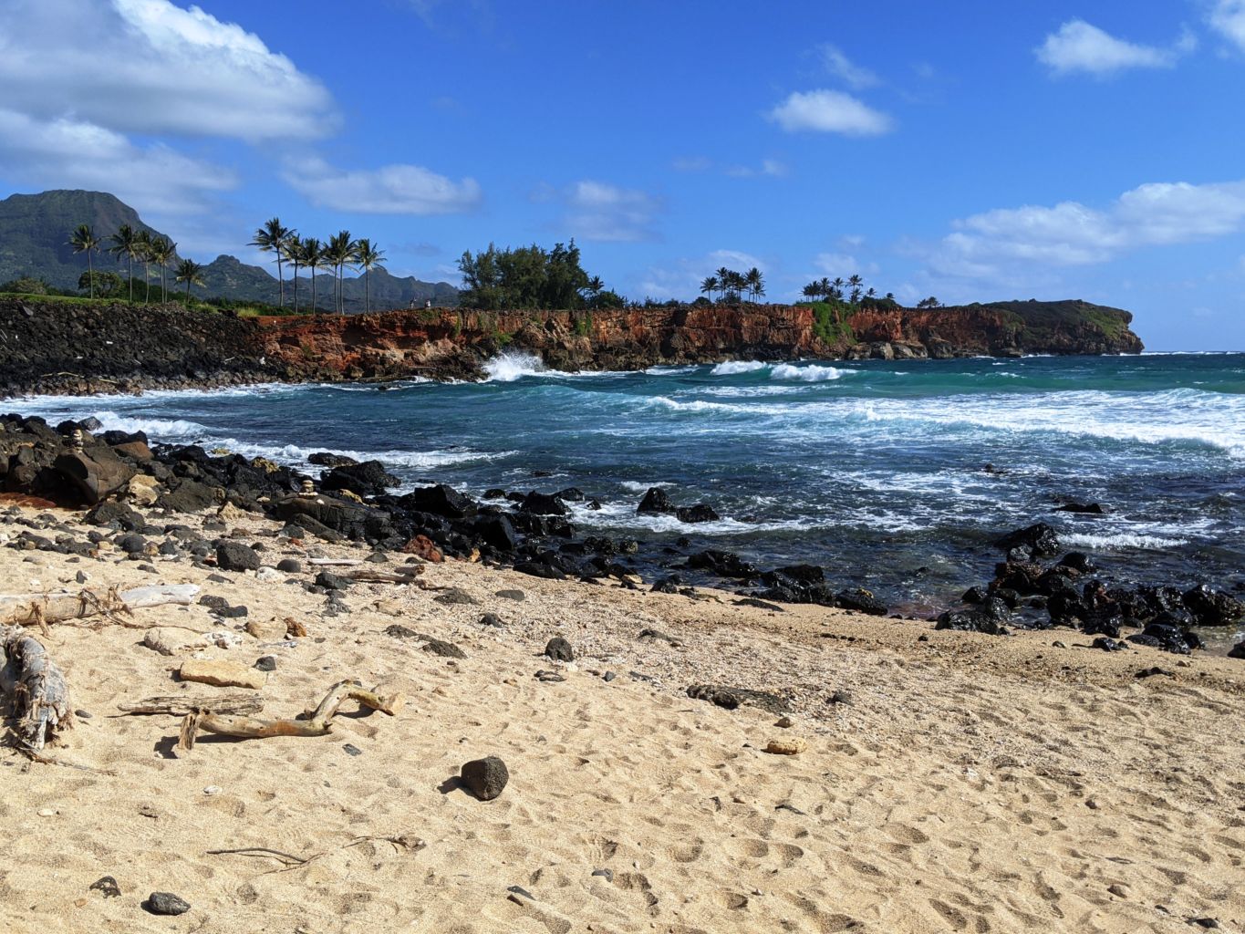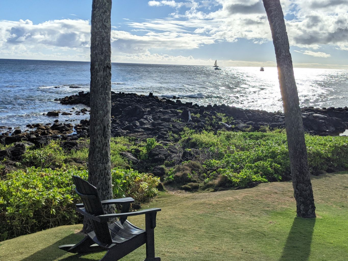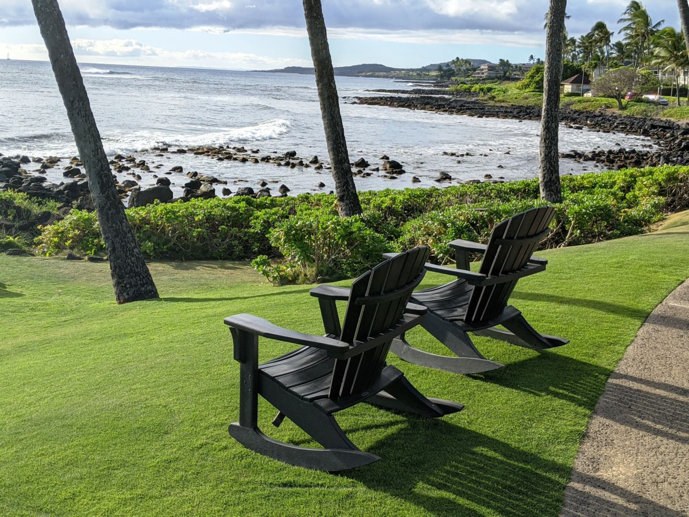 The next day, K wanted to take Jo into town for a girl’s day and massage.  They were able to make a reservation at a place in Lihue at one of the resorts.  I had been craving for some old world Hawaii, but since nobody else was into that sort of thing, I was left to my own devises.  Perfect!  I wanted to bring Kristen on a morning walk where I had explored before and Rick was up for it too, so the 3 of us headed out past Poipu Beach, and hit the Honu Bar outdoor restaurant of the Marriott Waiohai Beach Club.  It was super early and our waiter was cool.
