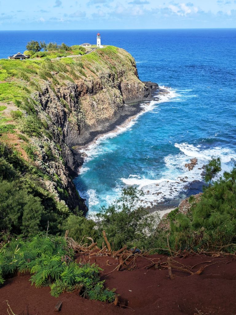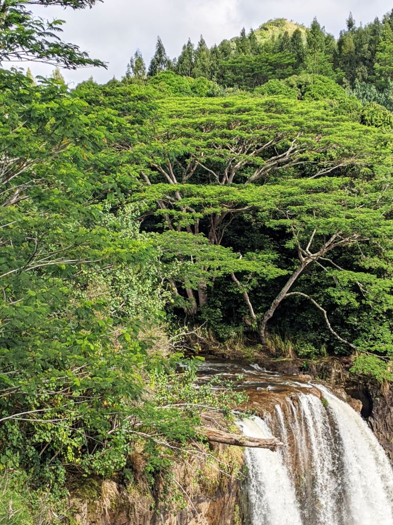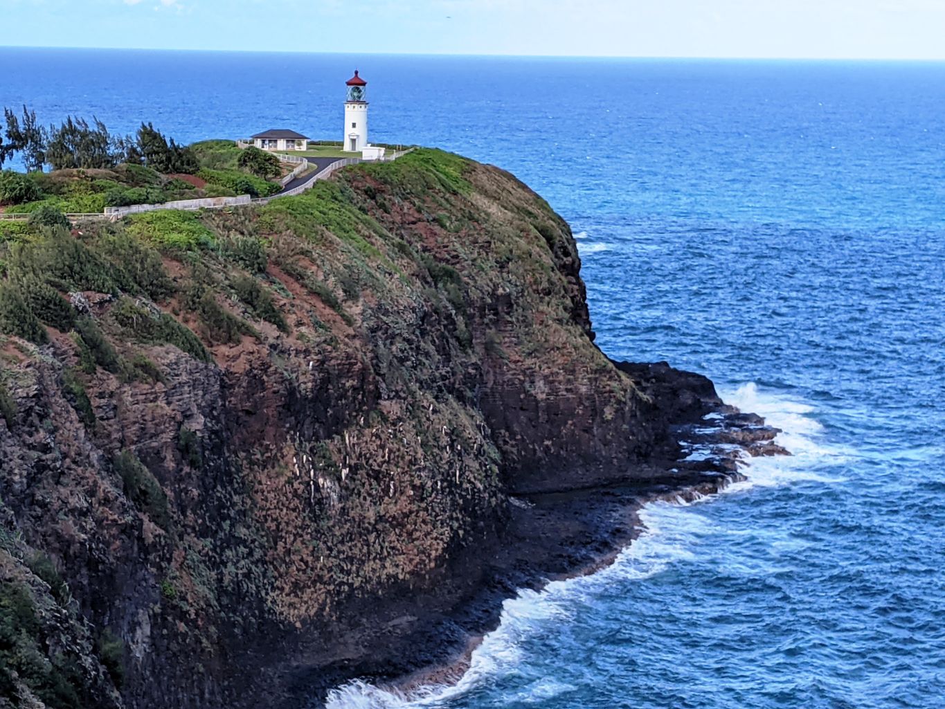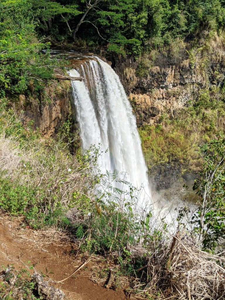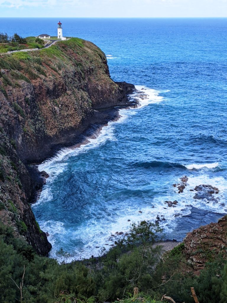 I wanted to see the Kilauea Light House, Princeville, Hanalei, and Wainiha, all on the far side of the island, and all recommended by Dennis to try to see.  K and I jumped in our rental car to make it happen, but we didn’t get too far before we took a detour to Wailua Falls.  It was unexpected, but worthwhile, even though it ate up more time to see the many places we also wanted to see.  We made it through tons of construction and past the destroyed Coco Palms where Elvis made some of his movies.  It was sad to see nothing but concrete ruins after all these years.  Kapa’a looked cool, but not enough time.