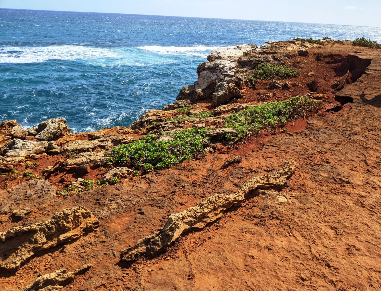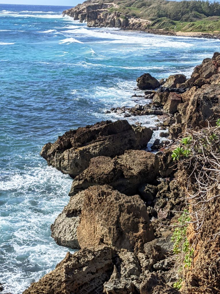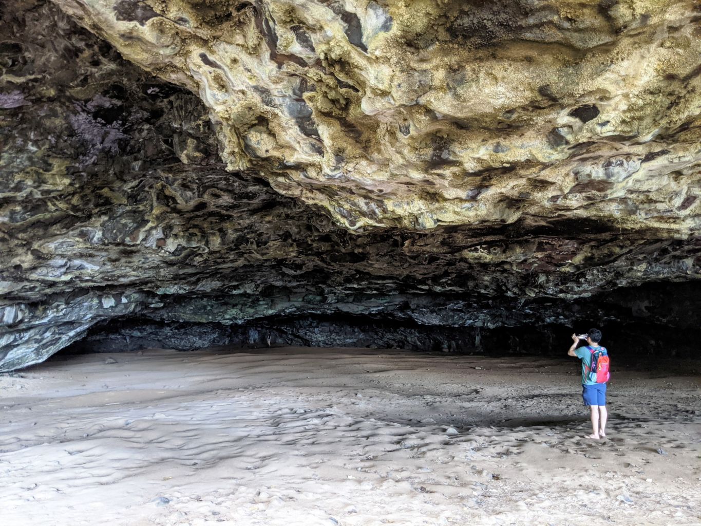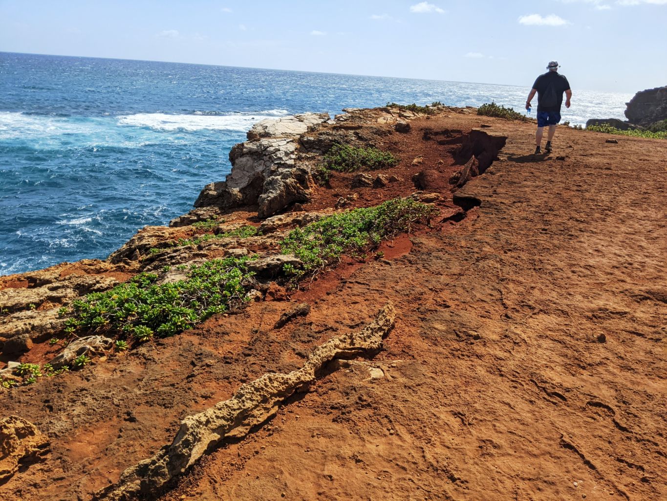 The next day, I had planned to take Kristen on a hike I had found doing my pre-trip research.  You could literally walk from our place, mostly along the beach, to the Makauwahi Cave Reserve.  After much discussion and gnashing of teeth, the whole crew cam with us.  We decided to drive some of the way to a trail access and hike from there.  It was awesome.  The scenery was spectacular, and we got the added bonus of walking on the Maha’ulepu Heritage Trail, along a few holes of the Poipu Bay Golf Course, past the Waiopili Heiau, and eventually made the caves.  They were a big hit and much more than I had expected.