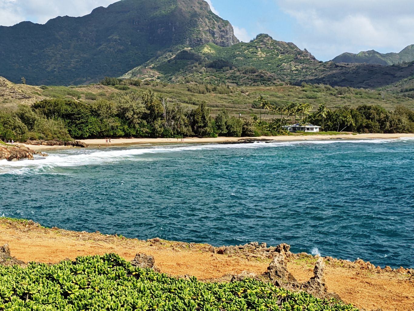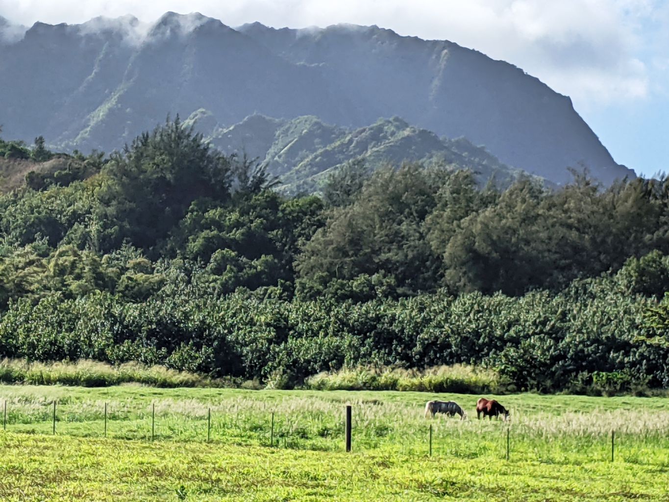 The overlook of Hanalei valley and river is a must and the little town is even better.  The narrow streets and small shops and mellow vibe is exactly what I was looking for.  I wanted to get all the way to the end of the road where the Na Pali Coast Wilderness begins, so we breezed on through to Ha’ena Beach and the Maniniholo Cave across the road.  A few more miles and we were at Haena State Park and the official end of the road.  It would have been great to be able to walk into the park a few miles, but not today.  We headed back into town famished and hunting for food.