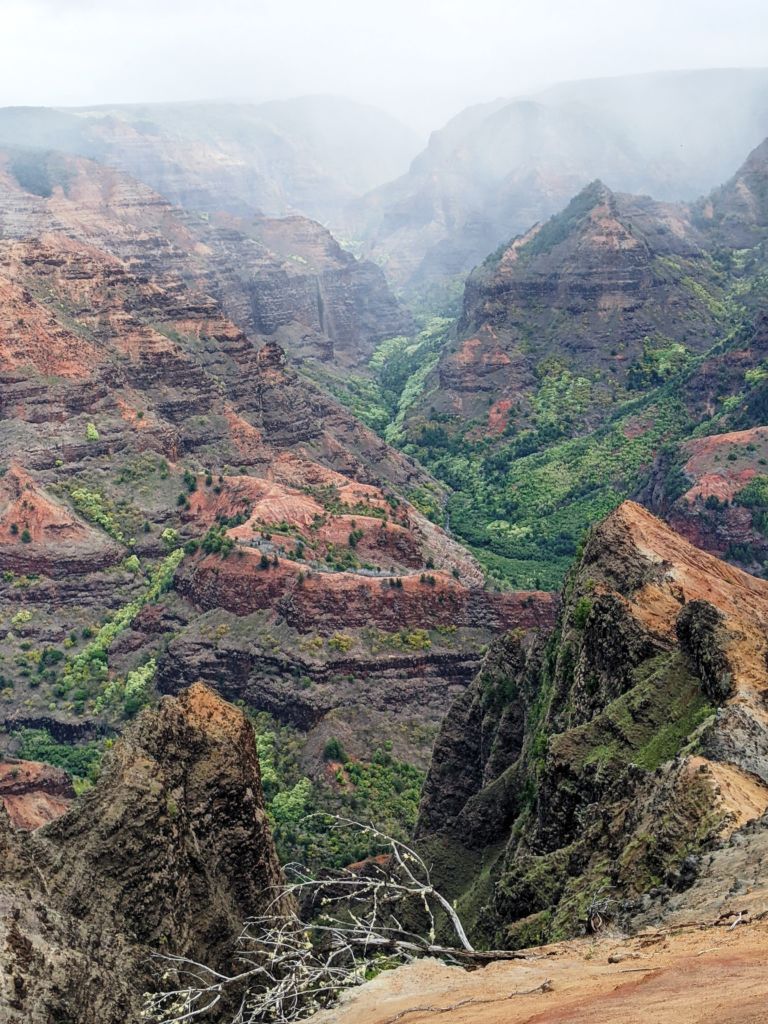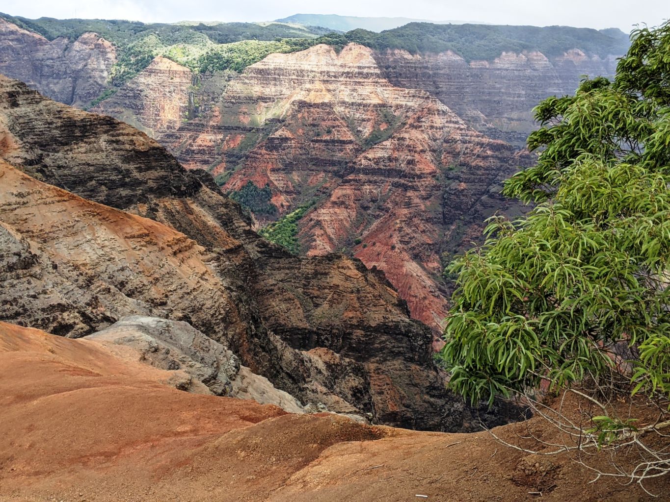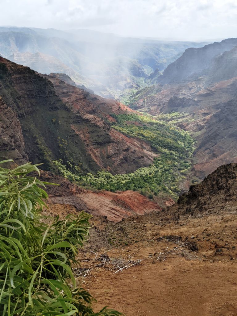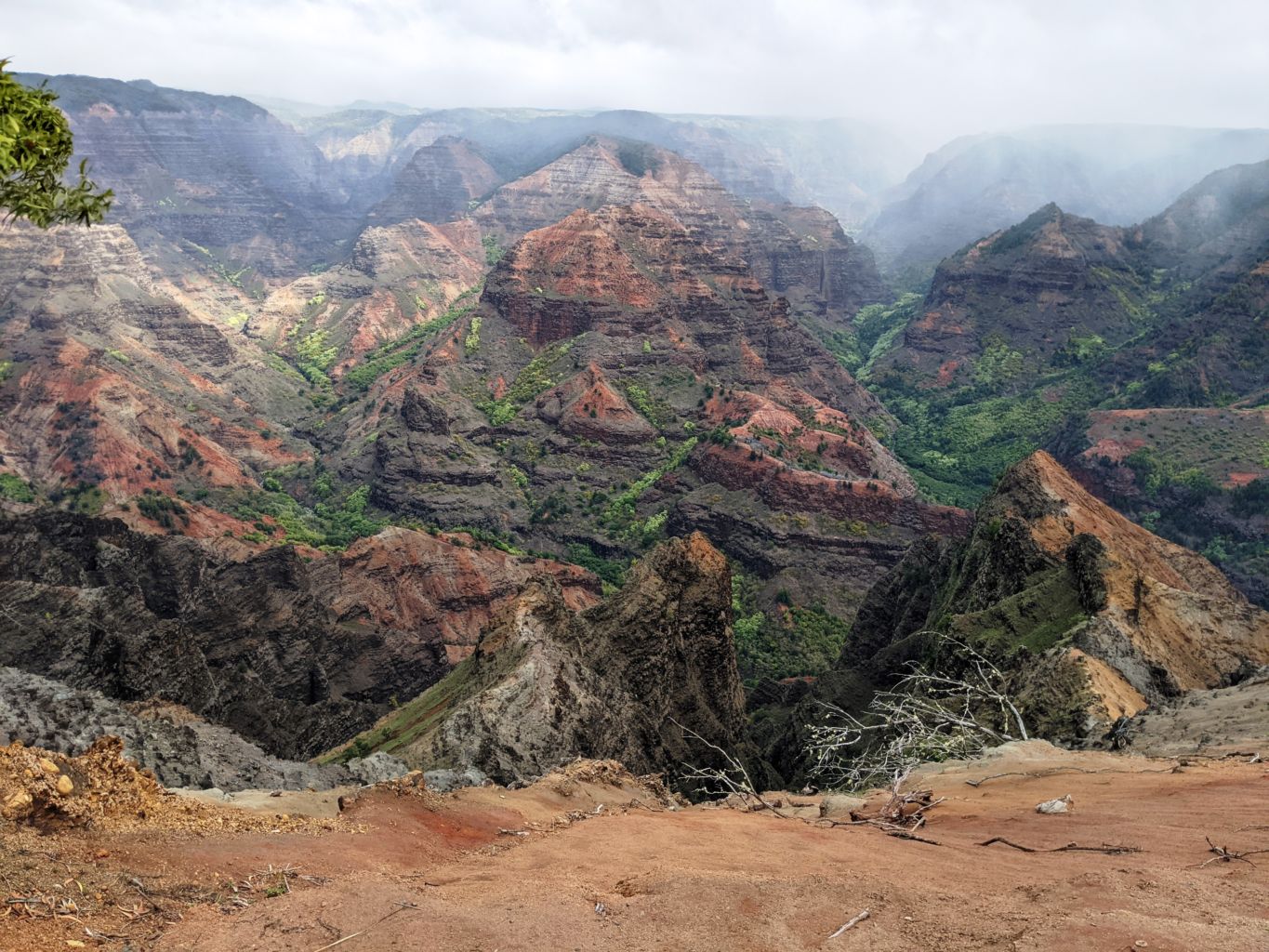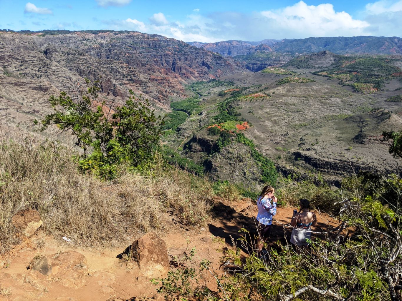 The next day we split up and drove our crew up into Waimea Canyon with Sharidi, Molina, K, and Jade.  On the way up, we took a random side road that brought us to a super cute little old town of Hanapepe.  It is a place I would love to go back to.  In recounting our trip to Dennis, he was fairly certain that was the town he and Lissa had bought some paintings that they love and adorn their home.  Up Waimea Canyon on Steve’s advice, we stopped at a couple of the Lookouts and at the Red Dirt Waterfall.  We eventually got to the end of the road at Pu’u O Kila Lookout and had a spectacular view of the Na Pali Coast.  It was a great day of short little hikes and spectacular vistas.