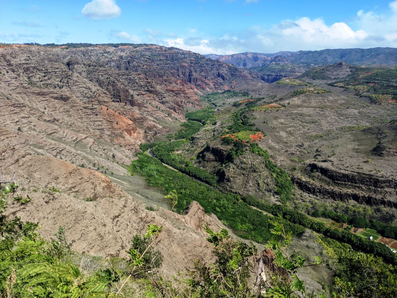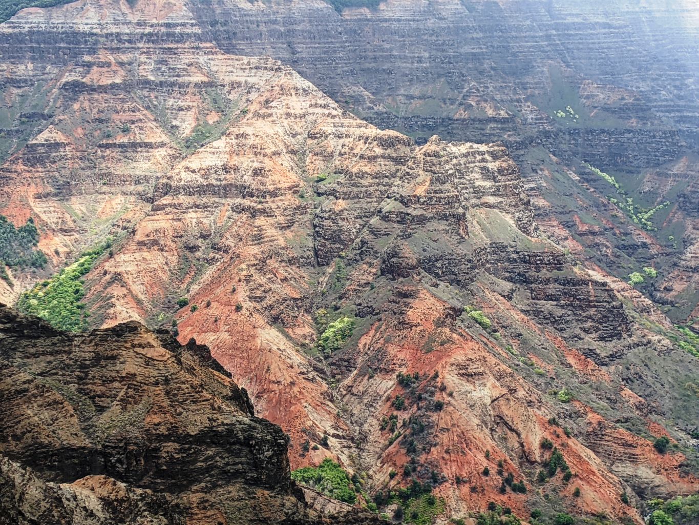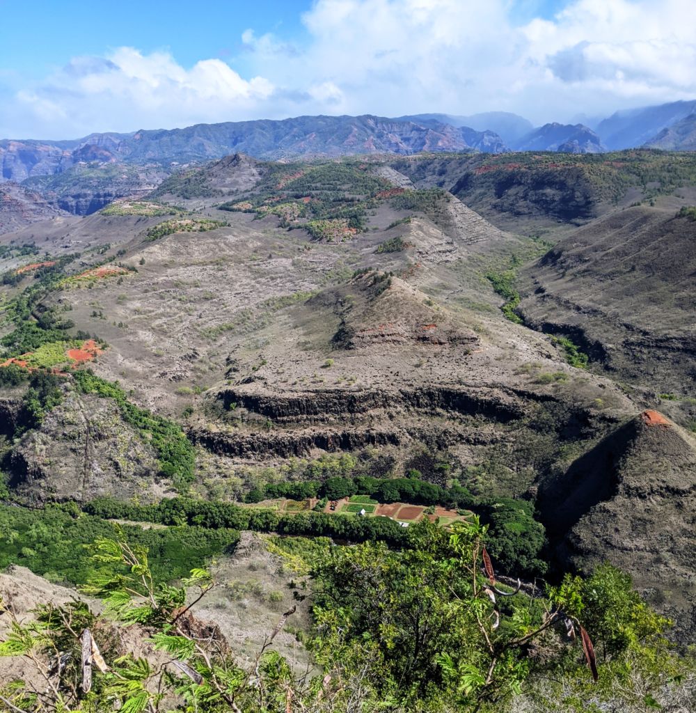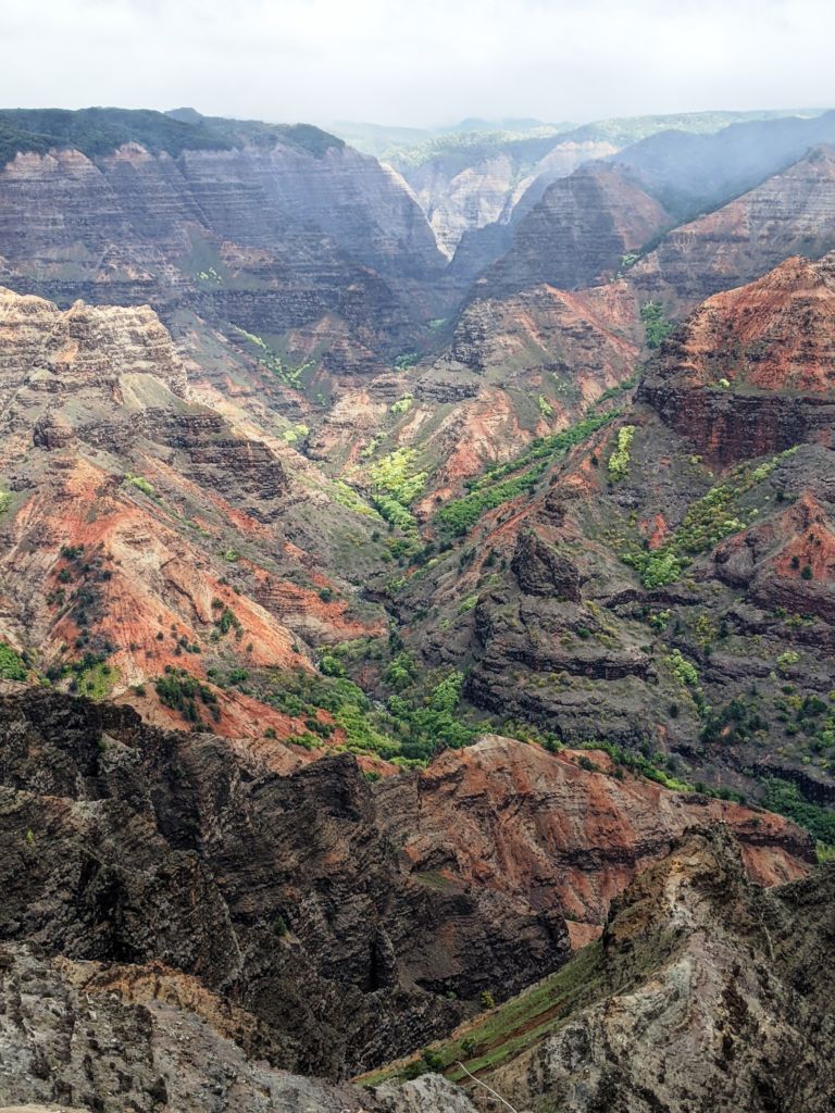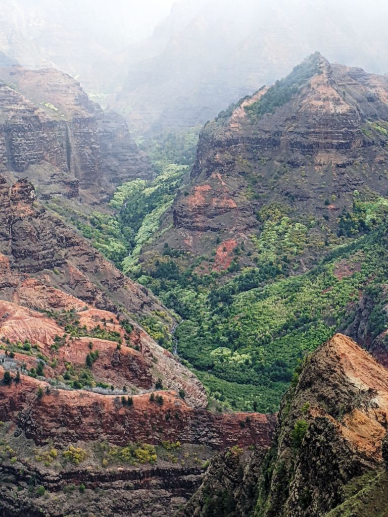 The next day we split up and drove our crew up into Waimea Canyon with Sharidi, Molina, K, and Jade.  On the way up, we took a random side road that brought us to a super cute little old town of Hanapepe.  It is a place I would love to go back to.  In recounting our trip to Dennis, he was fairly certain that was the town he and Lissa had bought some paintings that they love and adorn their home.  Up Waimea Canyon on Steve’s advice, we stopped at a couple of the Lookouts and at the Red Dirt Waterfall.  We eventually got to the end of the road at Pu’u O Kila Lookout and had a spectacular view of the Na Pali Coast.  It was a great day of short little hikes and spectacular vistas.
