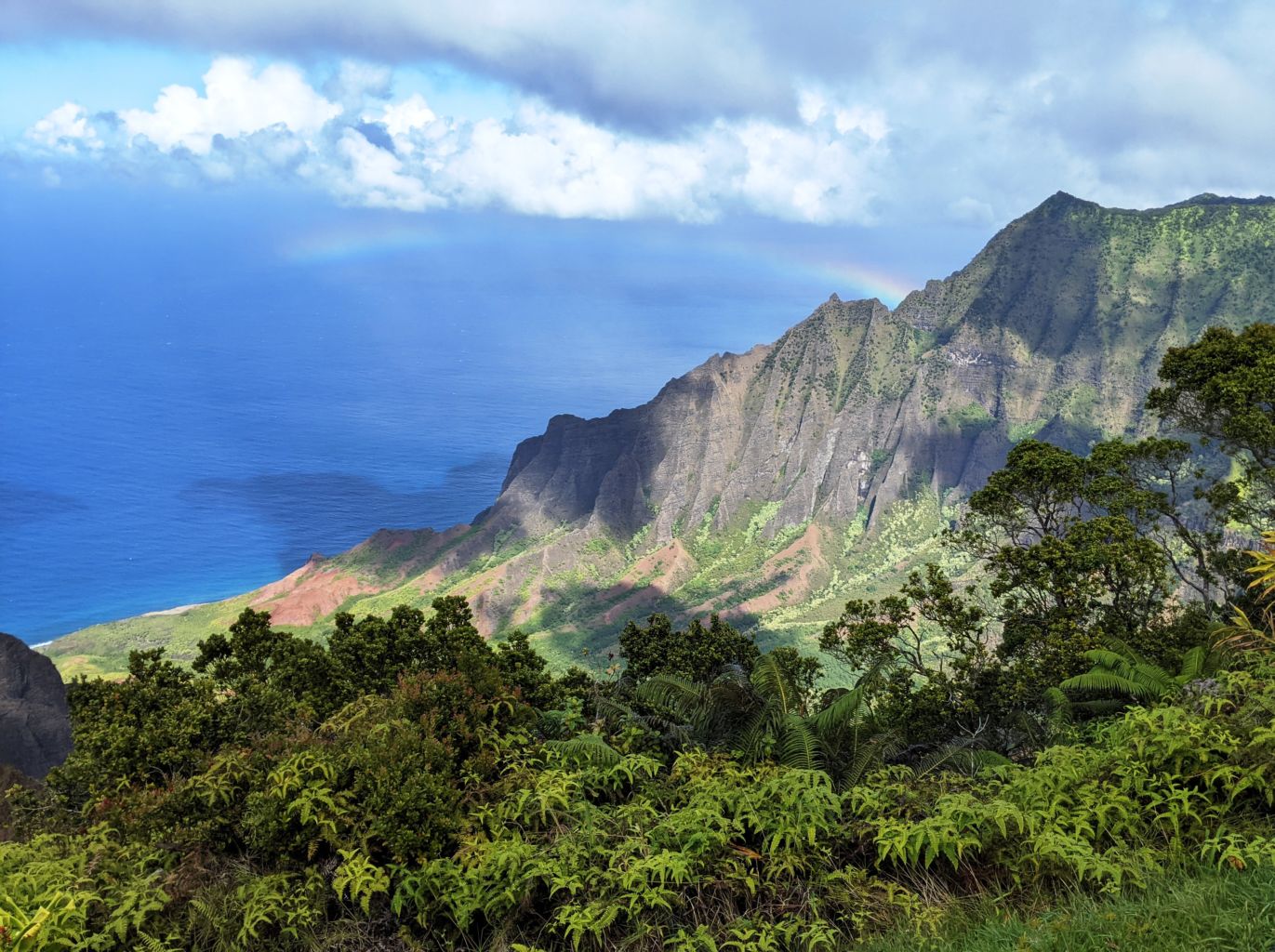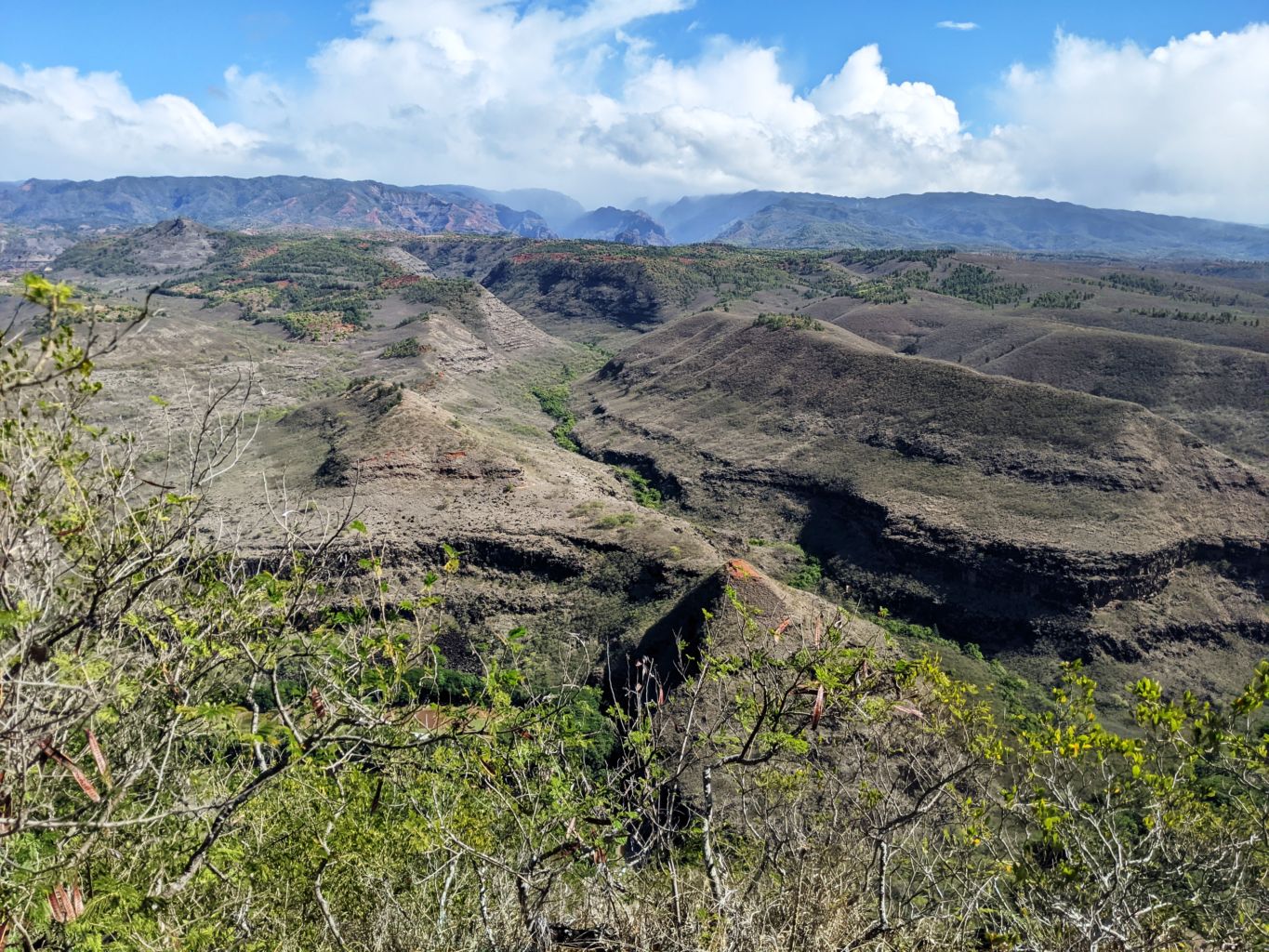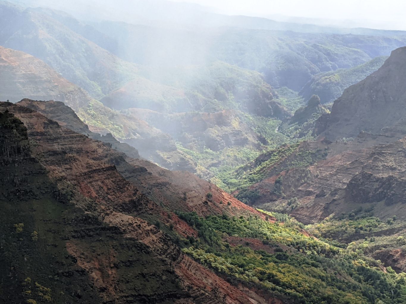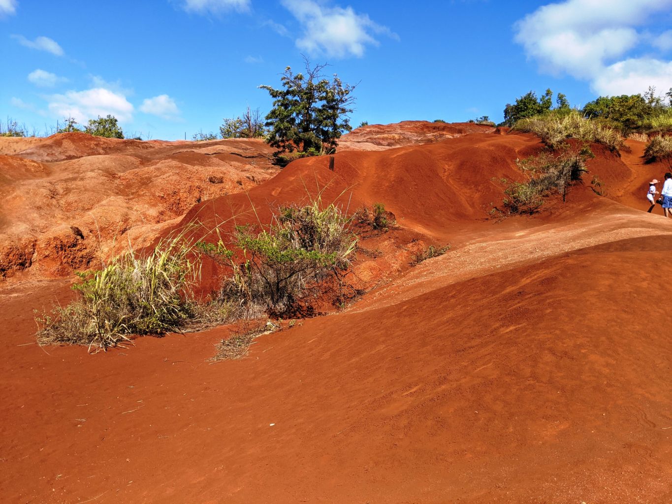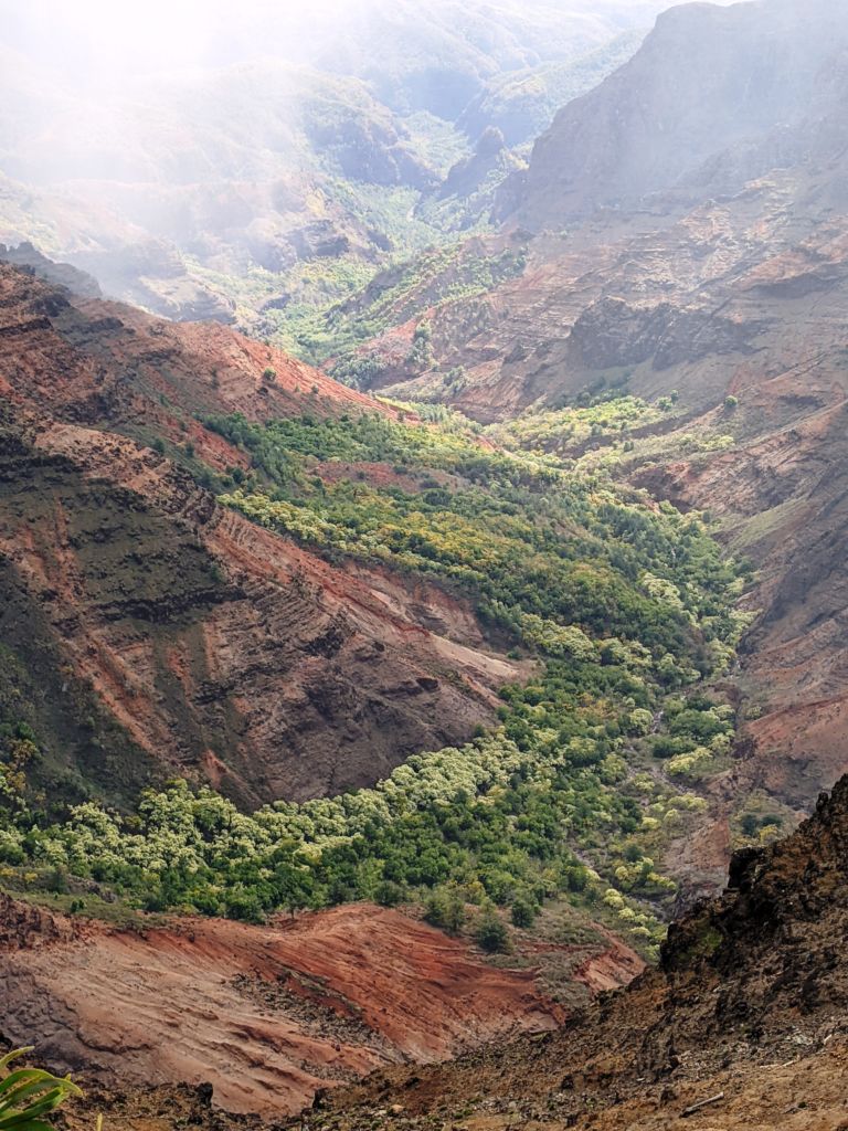 The next day we split up and drove our crew up into Waimea Canyon with Sharidi, Molina, K, and Jade.  On the way up, we took a random side road that brought us to a super cute little old town of Hanapepe.  It is a place I would love to go back to.  In recounting our trip to Dennis, he was fairly certain that was the town he and Lissa had bought some paintings that they love and adorn their home.  Up Waimea Canyon on Steve’s advice, we stopped at a couple of the Lookouts and at the Red Dirt Waterfall.  We eventually got to the end of the road at Pu’u O Kila Lookout and had a spectacular view of the Na Pali Coast.  It was a great day of short little hikes and spectacular vistas.