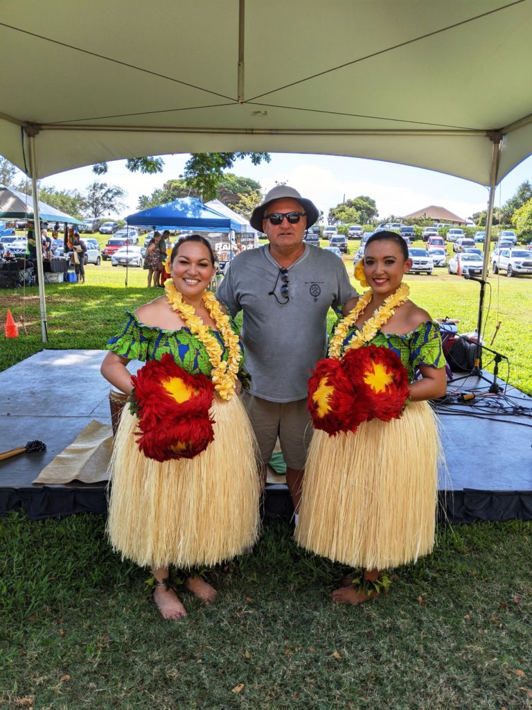 When they finished up, I took a picture with them and gave them a donation to help with travel costs for an upcoming hula competition they were attending.  Once they finished up, a large old lady came up on stage with her ukulele and a young dude with a guitar and they proceeded to play the loveliest old Hawaiian music.  I listened to them for an hour or so and when they finished another guy came up and played more music.  It was fantastic.  I decided to wander around and look at the vendors.