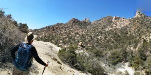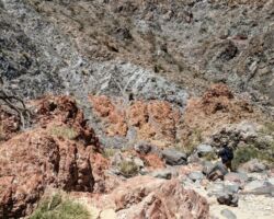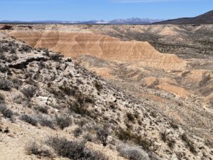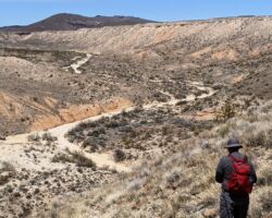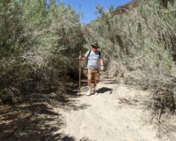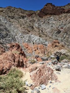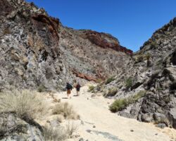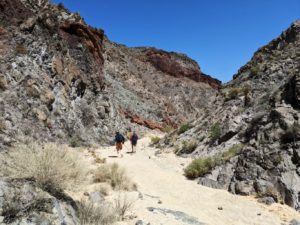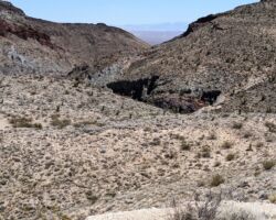 Needless to say, sleep was rare, although I felt pretty good when I awoke. This despite, not only the wind, but my air pad going flat and not being able to sleep on my side. The morning was breezy, but the tremendous blasts were non-existent. The forecast had predicted up to 70 MPH gusts for the Eastern Mojave. I don’t know if they were that strong, but they were easily the strongest and most sustained gusts I had ever camped in. We all were in pretty good shape and soon got to planning our day and consuming coffee and breakfast. It was an easy decision to stay close to camp and not get back in the rigs so we decided to hike up the canyon to a mine that Bob and Marya had hiked to when they were here last.