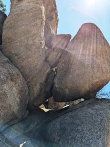 The next morning Tom was up and out early leaving the 3 of us to adjust. We had decided to wander back down the road and explore some of the side roads that headed up into rock formations and heavier vegetation. After a leisurely morning, we hiked out of camp to see what we could see. There were 2 tracks that passed between posts, without a gate, but were posted no trespassing private property. I know it is possible that some of that land is private, as we passed many private homes and ranches throughout the park. However, I was suspicious of these , thinking some rude people may have just wanted less people using the camp spots they liked.