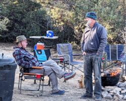 Back at camp, Tommy pulled out a jug of Manhattans and began prepping some steak and asparagus. This was to be Tommy’s last night with us as he was heading back to Sac a day early to help Jean prepare for his 60th birthday party that was planned 2 years ago. Not wanting his ex to do all this work for him and he just rolling in the night before the party, he was heading back to help out and give her some much needed assistance. The evening breeze was still with us, but had become more of a welcome friend than raging drunk. The temps were great and we had a delicious meal. After hanging a bit with Tom, I was off to bed and sleep came swiftly after such a massive day.