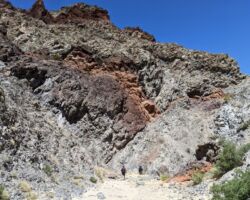 We had not gotten an early start, and it took several hours to get to this spot, the beginning of the hike that was to be the main adventure, and were estimating the hike could be several hours, and we didn’t have that time to get there, be there and get back before dark. But we were here now, and without too much discussion, over we went, and dropped steeply into the wide wash that quickly became a narrows twisting and turning like every drop of water and grain of sand that helped carve this tiny gap through the mountain range. The canyon was way more impressive than I had expected, which was nothing special. But it truly was spectacular in every way; colors, formations, flowers, birds, steepness, narrowness. It had everything except a little waterfall or even trickle of water, but still, it turned out to be a gorgeous place.