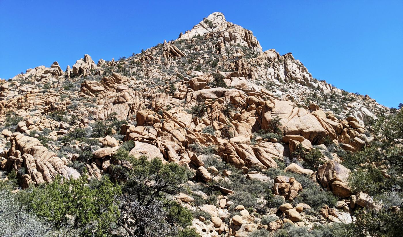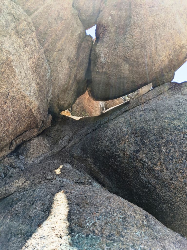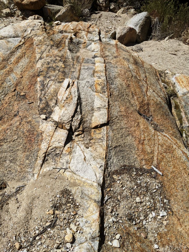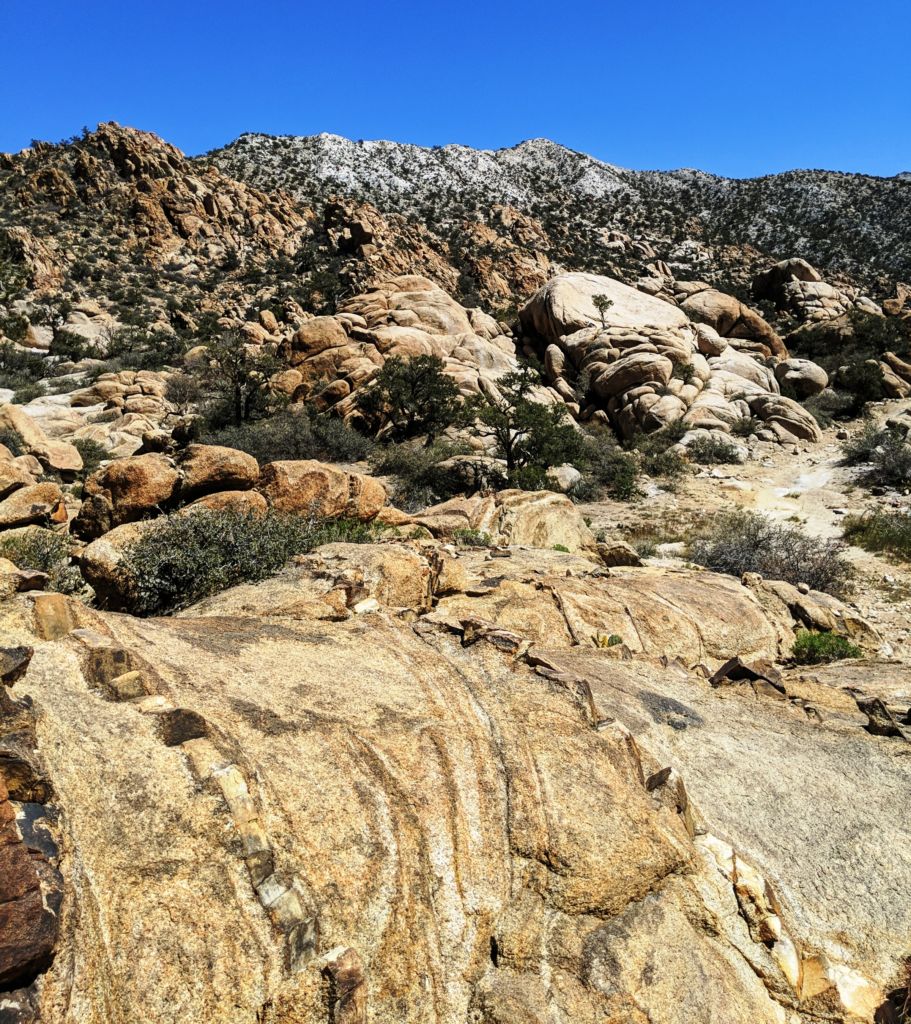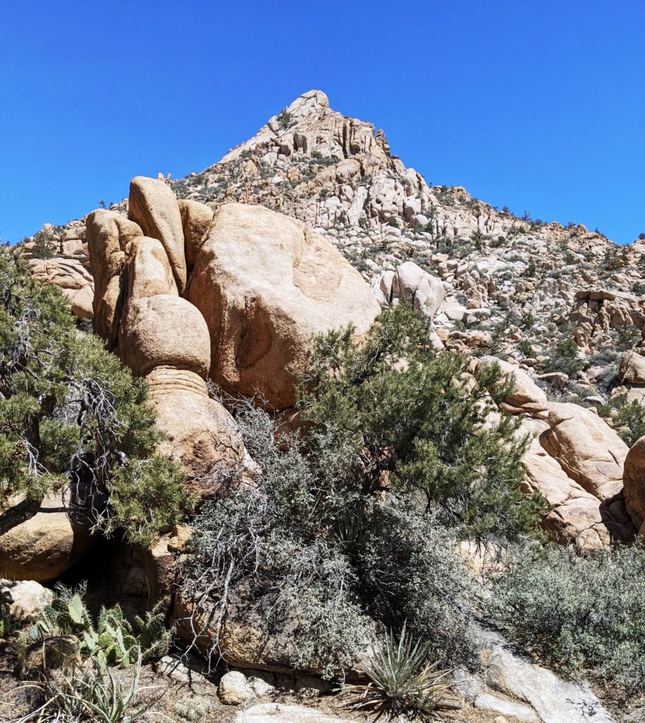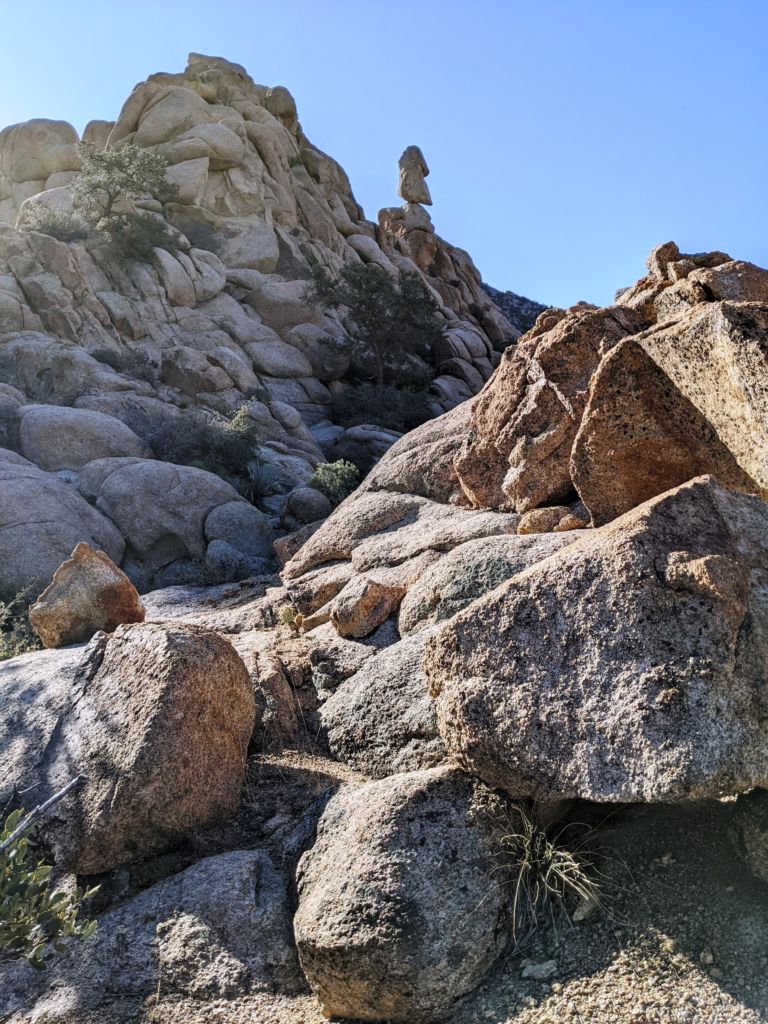 Nonetheless, prior to coming to those tracks, we came to another road without such signage so we decided to head up it and explore. It obviously had been used quite extensively as the road in was good and several spots had been trampled and cleared from use. We poked around here and there and finally settled in the shade of a massive boulder pile for some R and R. We were marveling at the great number of plant and brush species there were right in this little area, even though, at first glance, there wasn’t much growing at all. I should have pushed on and checked out those other roads as coming back is less and less likely. However, we again ran out of time and motivation and just headed back to camp.