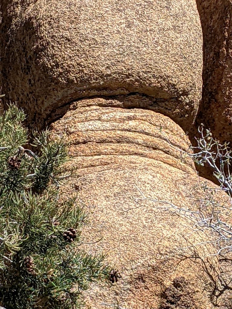 On the way I was suddenly aghast at the sight of a massive balancing penis rock. It instantly brought me back to Kodachrome Basin State Park in Utah, which would be more aptly named Phallus Field or Inspiration Tower or Let’s Get Busy Valley or Do You See What I see Park. It is wildly suggestive with numerous rock hard prominent towers that impress and amaze. This lone balancing rock was less prognathic, as Tom likes to say, but nonetheless impressive in the singleness and in equilibrium. I noted its location and hoped to clamber up near its base at some later time. With a fine morning experience under my belt, I headed back down the road to camp.