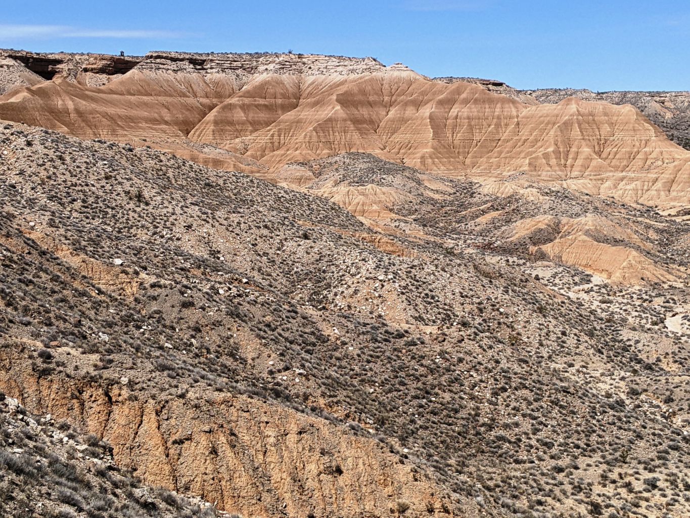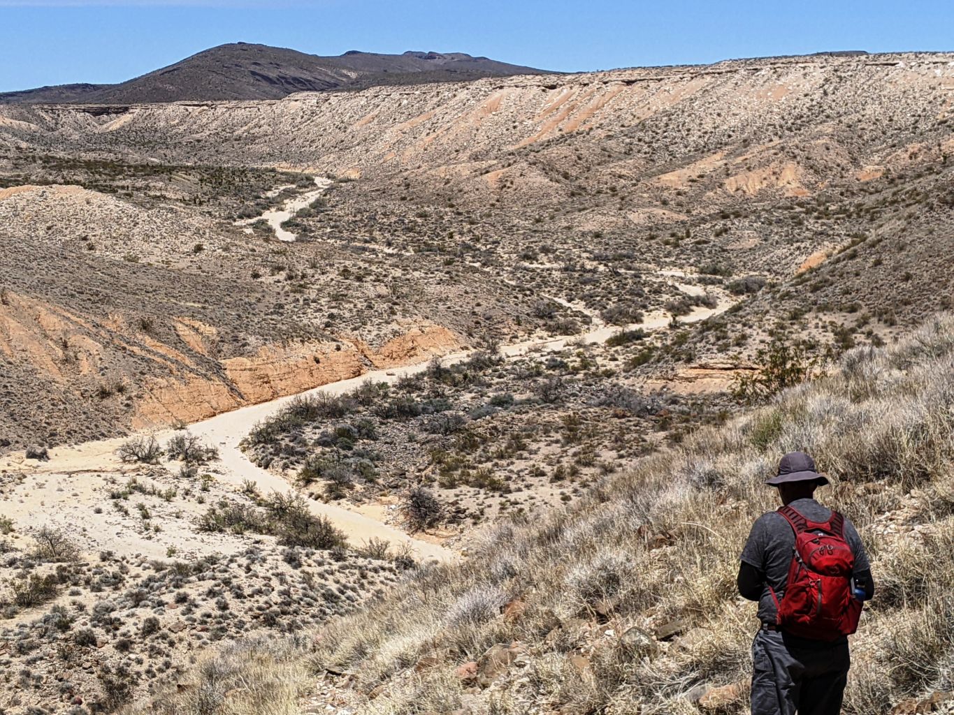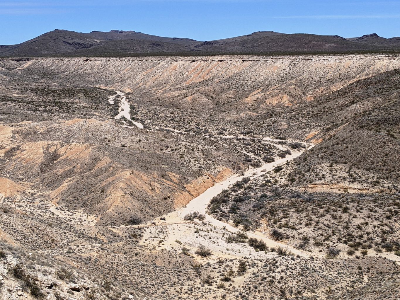 Before long, we were out there. The road in stretched was great smooth gravel where we could go 35-45 MPH. In other stretches, we were climbing or dropping 20 feet into massive boulder strewn washes or listing at 30 degrees on clay banks that may not have been easier to drive on than just heading cross country through the brush. It was a wild wild drive and really gave a scale of vastness that stretched all the way to Arkansas and Louisiana before the vegetation changed. We weaved back and forth on a number of routes that criss crossed each other and several others. We stopped a couple times to compare notes, but I think it didn’t matter which track we were on, they were all going to end on the lone North-South track that lay at the foot of the hills to the East that we had to hike through. And so it did.