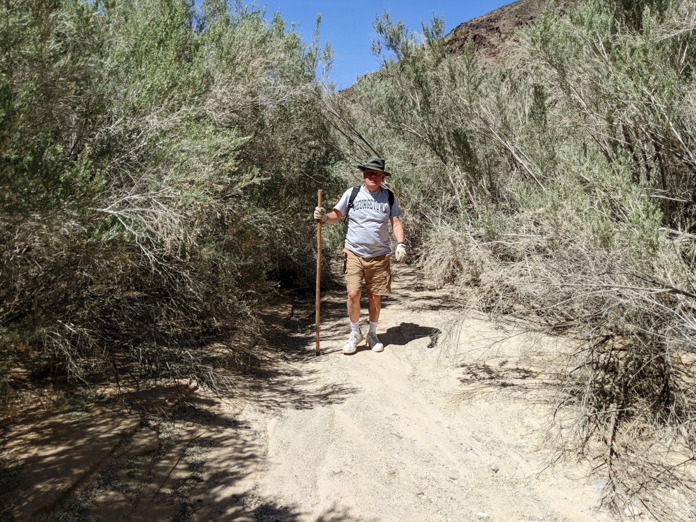 Needless to say, sleep was rare, although I felt pretty good when I awoke. This despite, not only the wind, but my air pad going flat and not being able to sleep on my side. The morning was breezy, but the tremendous blasts were non-existent. The forecast had predicted up to 70 MPH gusts for the Eastern Mojave. I don’t know if they were that strong, but they were easily the strongest and most sustained gusts I had ever camped in. We all were in pretty good shape and soon got to planning our day and consuming coffee and breakfast. It was an easy decision to stay close to camp and not get back in the rigs so we decided to hike up the canyon to a mine that Bob and Marya had hiked to when they were here last.