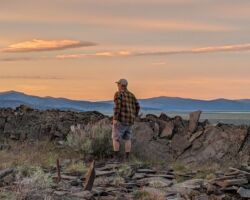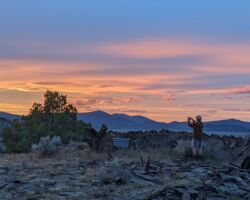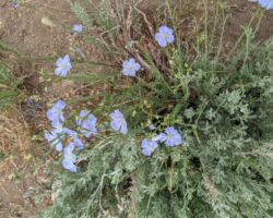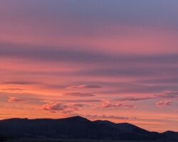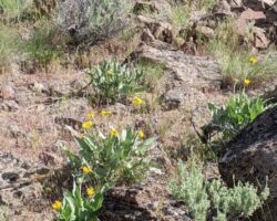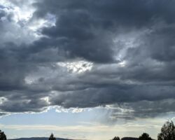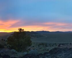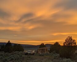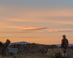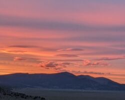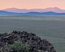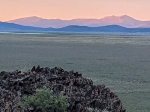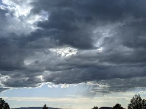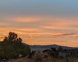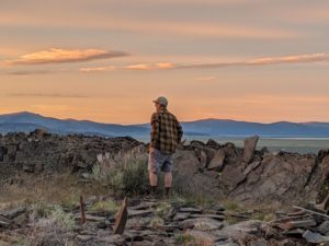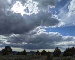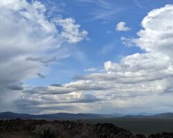 By the time we got to the main gate, we were almost constantly swatting away flying insects. The bug situation is far worse down below than it is up top. I assume that has something to do with how much rockier, drier, and less vegetation there is up top. The soil down below I would say is downright good, easy digging and very little rock, not even much small stones or pebbles as Bob and I found out when we set those railroad tie posts for the gate down by the cemetery. It is easy to see how much more sage, other brush, and flowers there is at the bottom versus the top. We had to stop for a rest by the upper gate and took in the incredible sky. The sky up here is one of the best shows on earth.