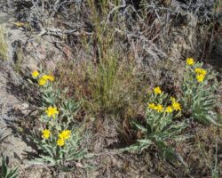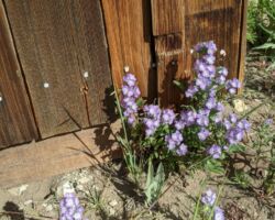 I believe Mike brought up marinated chicken to BBQ. I may have brought our first yellow squash and a couple peppers from our garden. I recall taking an evening walk down to the cemetery and then on down the road to the SE corner of the property. Then we walked out to South Grasshopper and back up to the main gate. We saw tons of wildflowers and stopped to look at many of the different species. We stopped at a giant circumference Juniper that had its top blown out so that it was very short. Like a giant cotton candy.