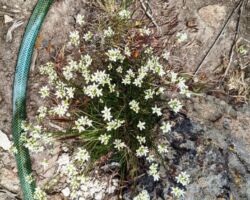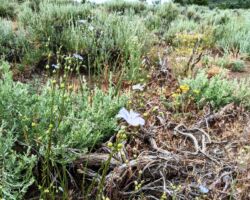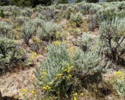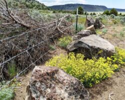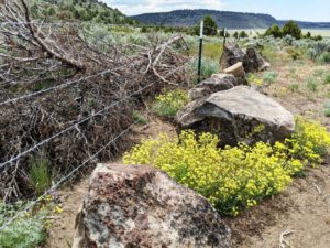 We were both up pretty early and had coffee and breakfast on the Western Addition. Mike and I both packed up and organized our gear. Mike swiffered the trailer and noted how much dirt came off the floors. He loaded his rig while I gathered some materials to mark the NW corner and the Western midpoint depending on what I found out in the field at the existing markers. Mike followed me down the hill and I hopped in his car to show him the NE corner marker, which is clearly marked alongside Termo-Grasshopper road, so we headed back to South Grasshopper, and out task at hand. I found the NW marker in my binoculars before heading out and just went out with wire, snips, and a can of yellow paint to find the marker.
