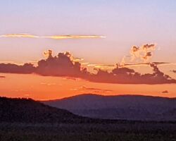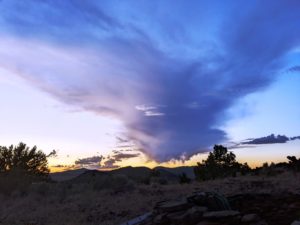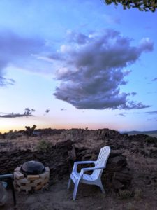 We BBQ’d the last of the hot dogs and burgers and had a can o’ peas for our greens. The sunset was off the hook. It was probably cool enough for a fire, but it seemed like a lot of work at the time. I settled for adding 2 more courses of fire bricks to the ring for no particular reason. We walked the loop road and I showed Mike where I had moved the wood pile across from my cabin, how I cleaned up the bone yard and where I moved the pile of tools and materials from the tree by the back of the trailer. It is all a little bit more cleaned up and orderly up there now. We talked about adding a couple more cabins or trailers or sleeping vans for accommodations. At some point I texted Steph about having all the family up on Hart Hill. It was an utterly fantastic night.