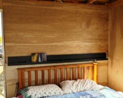 I was ecstatic to have that job done. It was tough to break the glass and then want to replace it to keep the dual pane glass, so the job just hung over my head for a while. I was stoked to have it behind me. With that Bob headed on down the hill and was gone. I was now waiting for Mike to arrive, but knew I had a few hours. I got some breakfast and swept and swiffered my cabin again. I tuned up my list of chores and started to work on finishing the Pine paneling in my cabin. It took me a long time to cut and careful screw in the replacement board for the one that shattered the glass in the first place, but once past that board, it was smooth sailing. I was nearly done when Mike pulled up top the hill.