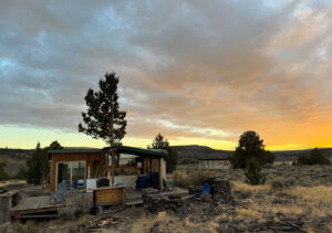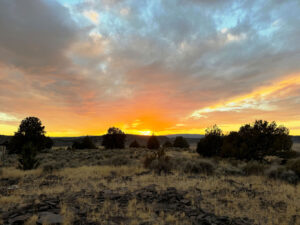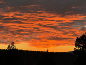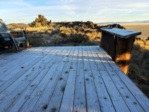 So, with no shower to take, and not being very hungry, and the cold setting in, a beverage was in order and a fire was needed. I had a couple cocktails in the fire corral and as I was sitting there in the dark, a skunk waddled right past me and under the stairs to the deck. Maybe he has rousted all the pack rats. After a bit, I then retired to the cabin, talked to K, added a blanket to my bed and dissolved into an incredible sleep. The sky again was super clear and the stars alive with twinkle and light. I alternated between hot and cold and didn’t like the heaviness of all the blankets, but I was in bed a long time. It was really cold when I got up and went right for the coffee and many layers of clothes, hats, and gloves. I was happy I was done with the watering and wouldn’t need to deal with that again. I had my first cup on the upper terrace in the sun and my second cup over on the bench. My third cup was on the go.