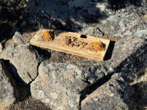 I had texted Diego on the way up and reached out to him again without a response. I figured he might be working up in Ash Valley or out of cell range somewhere so didn’t sweat the lack of response. I rambled down the hill to water around the cemetery and admire our new holes that Kelly dug for us. I put the healing bark protection paste on 5 trees and wrapped them with the gauze. I had 2 wire cages so made a note to bring three more down. We may have lost 1 or 2 more trees, but it is tough to tell at this point in the year. I can’t remember the name of 1 of the 3 trees species we planted around the cemetery, but they are the one’s having the bark eaten the most.
