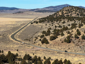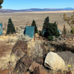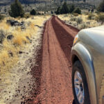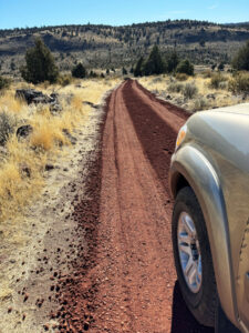 We had to go down out the gate to close up but while we were out, I asked if Mike wanted to check out the far corner. I pointed out a very large and straight trunked Juniper and the spot Ken, Bill, and I hiked up to check out the white soil area. We talked about fence Dale and Tim and Cindy the 5-G trumper weirdoes down the road. We talked about Cowboy Dale and his old place and saw the property markers, and Mike said how fun it was to drive around our property looking at stuff. Back inside the gate, we drove up our newly rocked road and were giddy about how good it looked and at the prospects of coming up earlier in the Spring. It was quite an achievement to pull off this job so late in the season but these guys were really professional and good to work with.