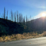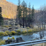 With a serious melancholy and a heavy bittersweet, I loaded up the truck and moved on down the Hill. At the upper gate a took a few pictures of the rock for Bob and then realized I didn’t have my glasses. I had to unlock the gate, reverse back up the road, walk all the way out to the point of the lower terrace and there they were. Back in the courtyard, I had to re toast everybody and then try again. At the cemetery, I stopped again for more pictures and to toast the dearly departed. At the gate, I decided to take South Grasshopper out the back door on the slow road. It was great to see Eagle Lake again and then blow out highway 36. I turned into Westwood and out Third street to intersect highway 147 coming down the East shore of Lake Almanor then into Canyondam and Greenville on 89 that are still devastated from the fire some years ago.