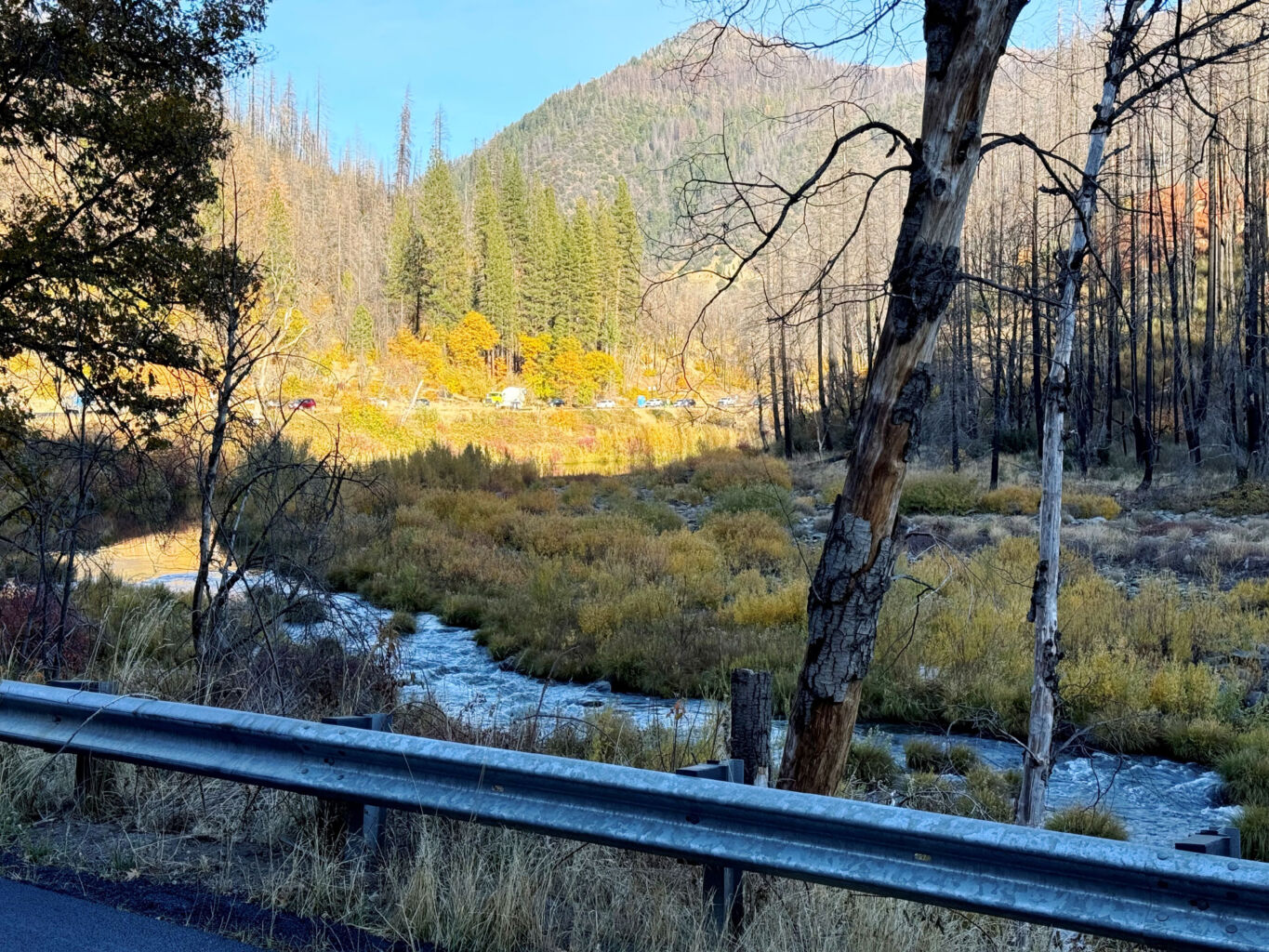 It is great coming up with no big projects on the slate as that means I am not hauling a ton of materials. Packing and loading is easy and the drive up is way less stressful. It is the day after our great country elected trump again, so I went with music from our party playlist all the way up and it was most enjoyable and beneficial to my delicate psyche. It was also a bonus to have Bob already up at the property as I didn’t have to unlock the upper gate. Just the tiniest thing like for me not having to unlock one gate can sometimes seem like it makes the whole trip easier.
