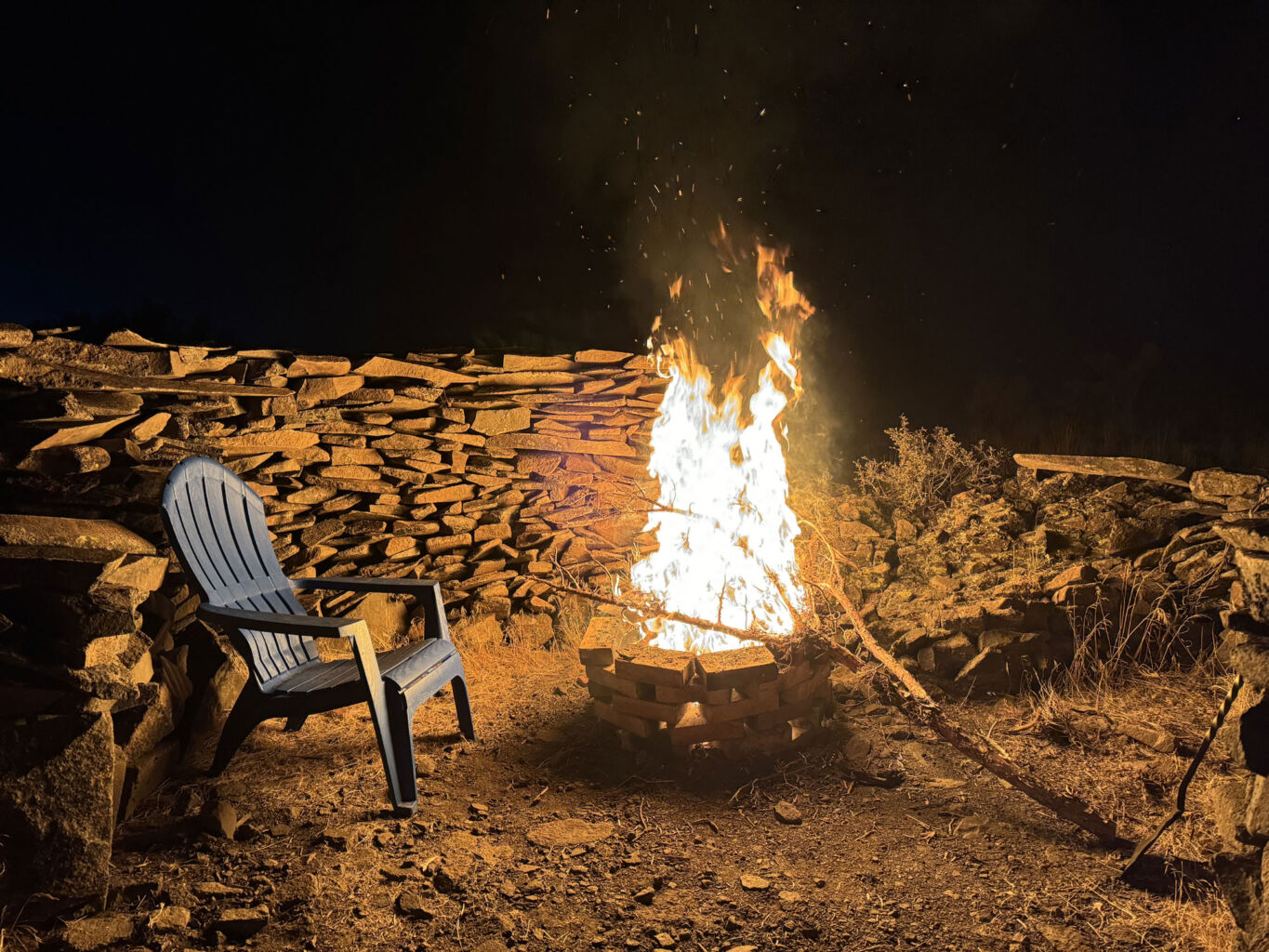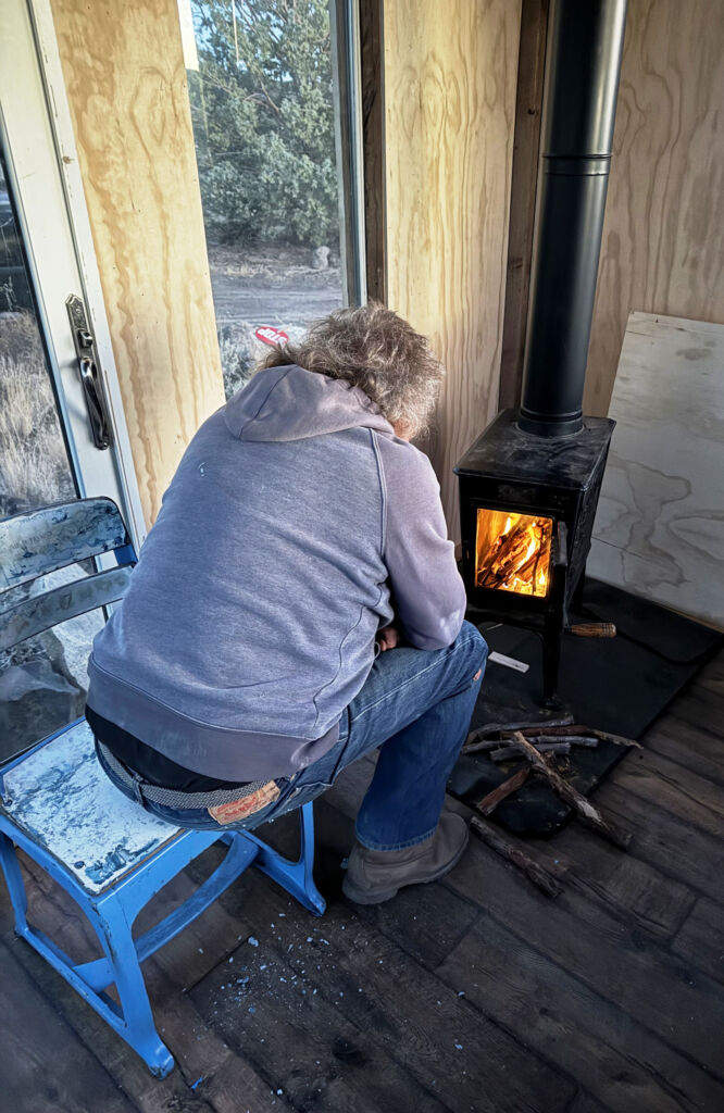 Mikey wanted to get a fire going in the stove so we did. Unfortunately, the heat was burning off all the chemicals from the new pipe and paint and the room became a cancer chamber. I had to get out but Mikey liked it. I had a lot of energy this being our last night of the year so I got a fire going and hauled up a bunch of juniper trimmings. Mike was off to bed about 6:00 so I poured me another one and got to the burn. It was awesome. I was happy to be burning the last of the construction debris, little pieces of lumber trim, the last of the cedar shingles we use for kindling, and a fair amount of dead sage we tore up from the cabin build or from Kelly’s tractor work. It was a big clean-up, big fire, big light and heat and awesome embers. It must have been all of 9:00 when I shimmied off to bed.