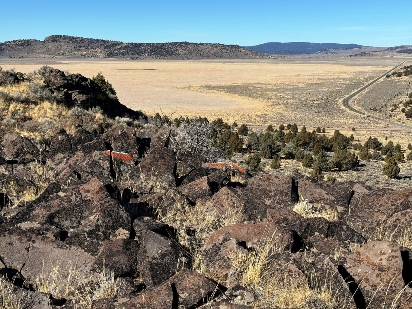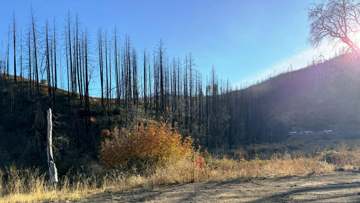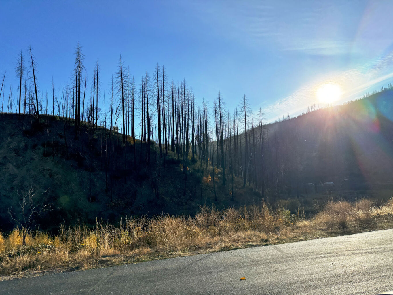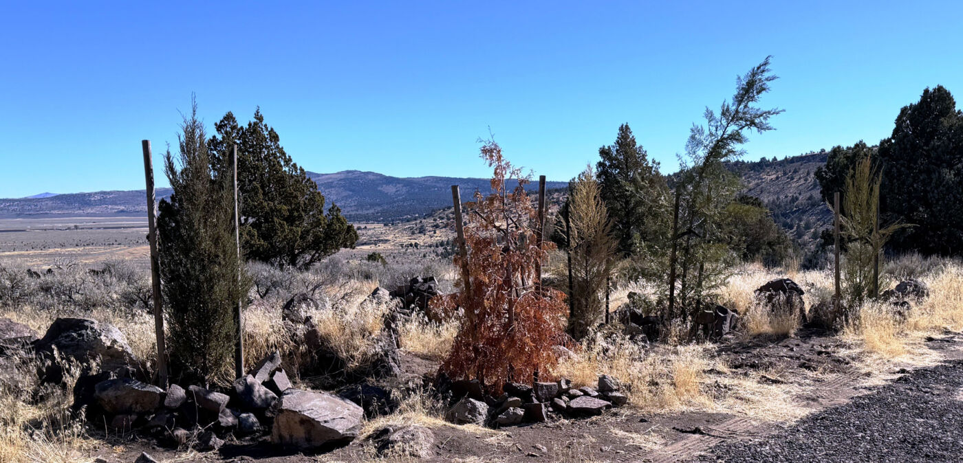 With a serious melancholy and a heavy bittersweet, I loaded up the truck and moved on down the Hill. At the upper gate a took a few pictures of the rock for Bob and then realized I didn’t have my glasses. I had to unlock the gate, reverse back up the road, walk all the way out to the point of the lower terrace and there they were. Back in the courtyard, I had to re toast everybody and then try again. At the cemetery, I stopped again for more pictures and to toast the dearly departed. At the gate, I decided to take South Grasshopper out the back door on the slow road. It was great to see Eagle Lake again and then blow out highway 36. I turned into Westwood and out Third street to intersect highway 147 coming down the East shore of Lake Almanor then into Canyondam and Greenville on 89 that are still devastated from the fire some years ago.