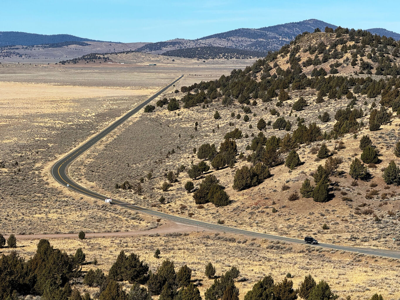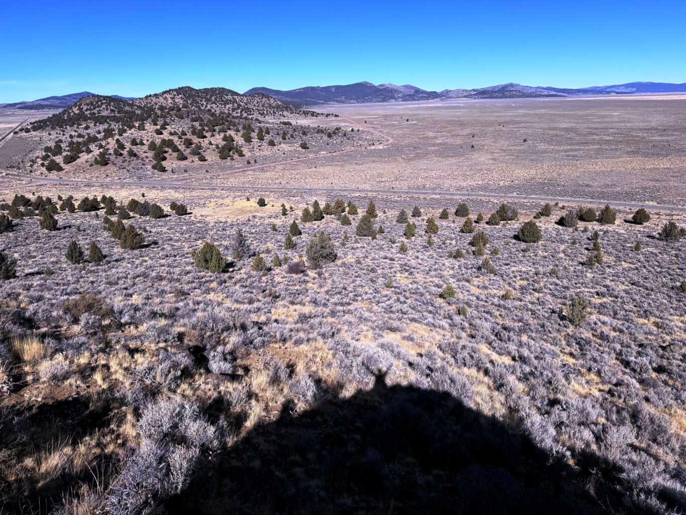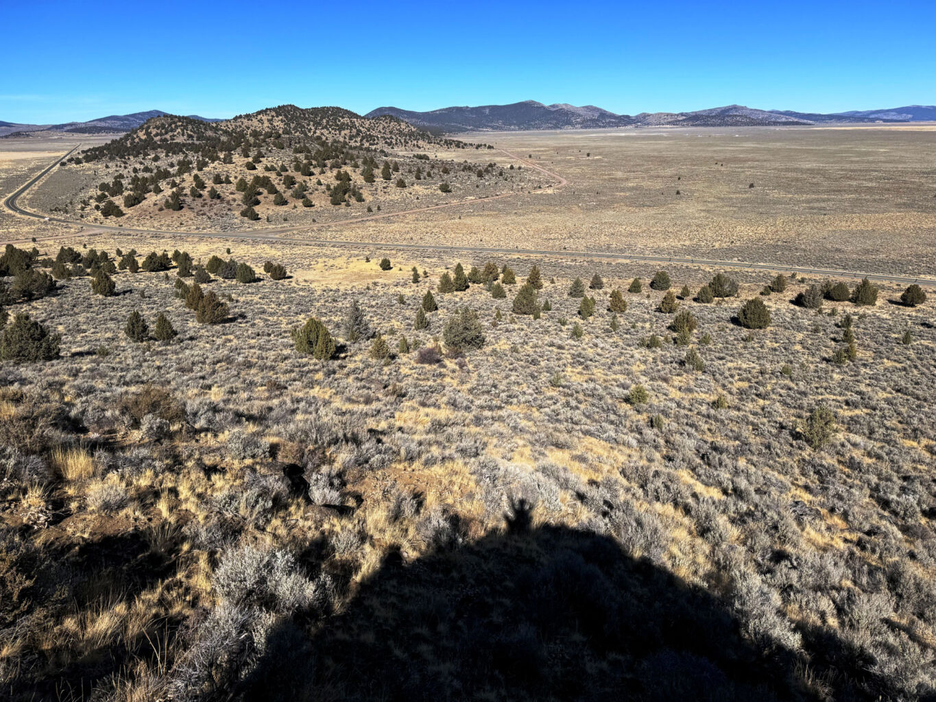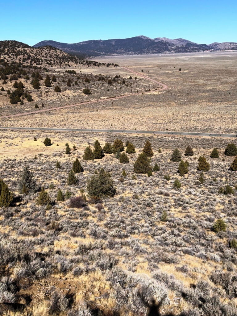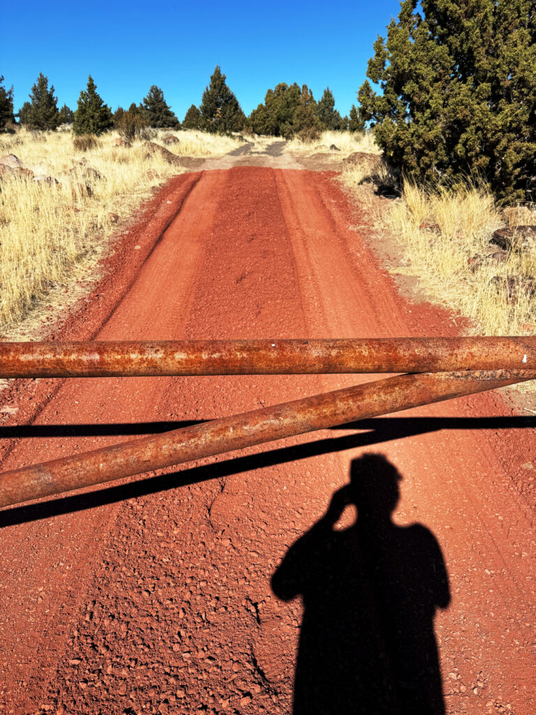 We had to go down out the gate to close up but while we were out, I asked if Mike wanted to check out the far corner. I pointed out a very large and straight trunked Juniper and the spot Ken, Bill, and I hiked up to check out the white soil area. We talked about fence Dale and Tim and Cindy the 5-G trumper weirdoes down the road. We talked about Cowboy Dale and his old place and saw the property markers, and Mike said how fun it was to drive around our property looking at stuff. Back inside the gate, we drove up our newly rocked road and were giddy about how good it looked and at the prospects of coming up earlier in the Spring. It was quite an achievement to pull off this job so late in the season but these guys were really professional and good to work with.