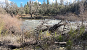 Eventually the guy came outside and sat with us and we brought out a bottle of our wine that he tasted and gave us some real good feedback. It was such a good time. We walked out to an event venue with lights and tables and chairs and then beyond it out into the vineyard and up to a beautiful vacation farmhouse rental that was part of the winery. It would be a fantastic place to rent for 4 or 5 couples. Across Highway 49 were 3 BLM river access points that Ken had talked to Howard about to get the inside poop. We decided to go to the Greenwood access to walk puppy even though he got a good workout at the winery.