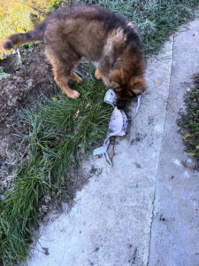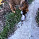 One of his favorite things to do is to play in the water. He loves puddles and our ponds and the creeks near our house. One spot in particular on Carmichael creek offers him the perfect depth to run and splash and then bite the splashes. He loves to run up and down the creek and now has gotten big enough to be able to jump out and across the creek to the other side and rage around there for a bit before he descends into the creek again to splash about. He has so much fun and it is a joy to watch him play.