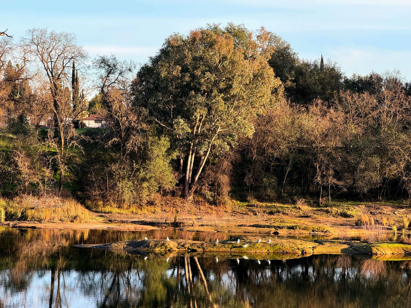 The South Fork of the American River was flowing nicely as we had had some good rainfall recently. We met a few folks on the narrow trail, but puppy was really good for the most part. He did get confused at one point and headed off with a group of guys doing a litter pickup, but otherwise stayed with us and was good with the dogs we passed. We stopped at a beautifully green spot and just stared at the water and the light and the greens. It was a great little walk to end a fantastic day.
