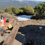 We had a small fire and BBQ’d some sausage and chicken and had a couple different salads and chips and dip. Steve surprised us with some of our wine and we kept all our beverages cold in the small patches of snow around us. It was a spectacular getaway.