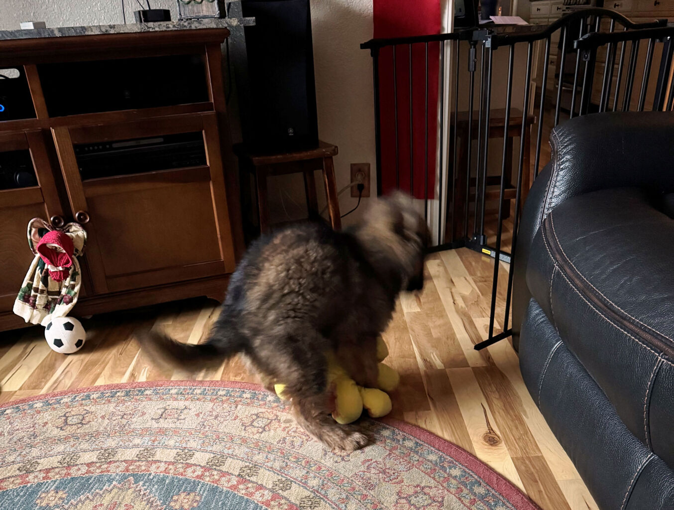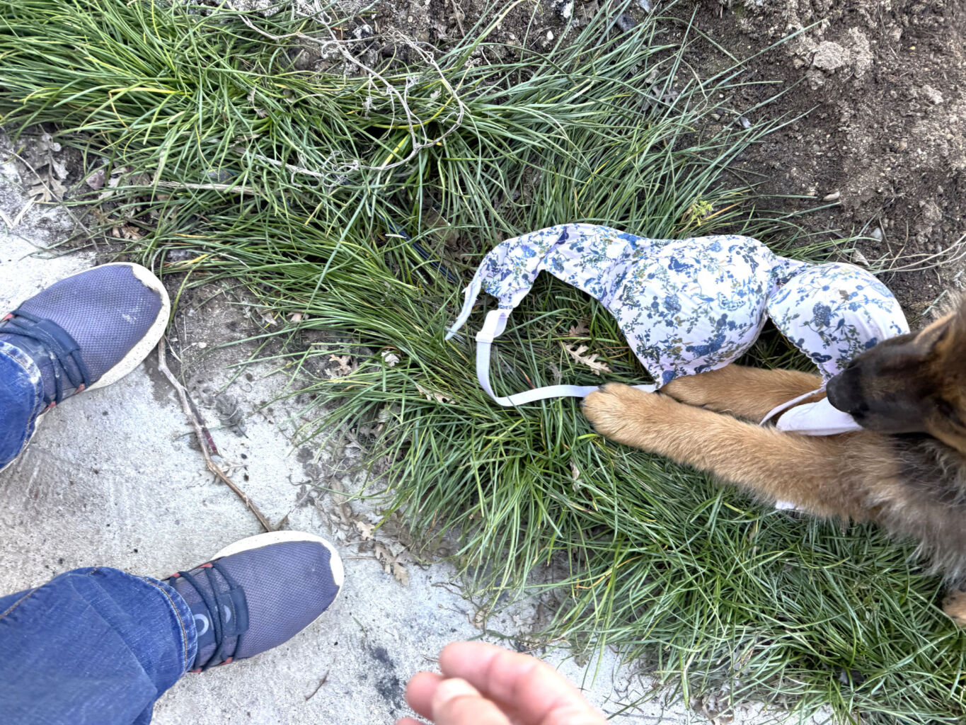 One of his favorite things to do is to play in the water. He loves puddles and our ponds and the creeks near our house. One spot in particular on Carmichael creek offers him the perfect depth to run and splash and then bite the splashes. He loves to run up and down the creek and now has gotten big enough to be able to jump out and across the creek to the other side and rage around there for a bit before he descends into the creek again to splash about. He has so much fun and it is a joy to watch him play.